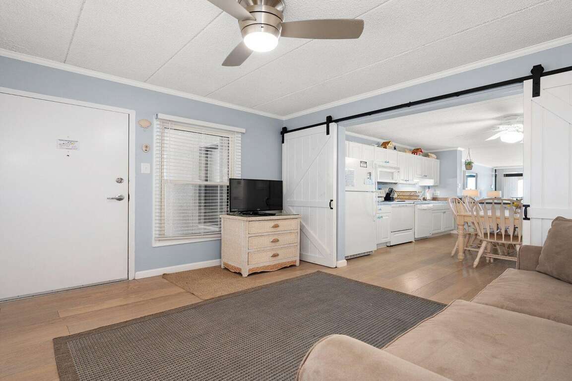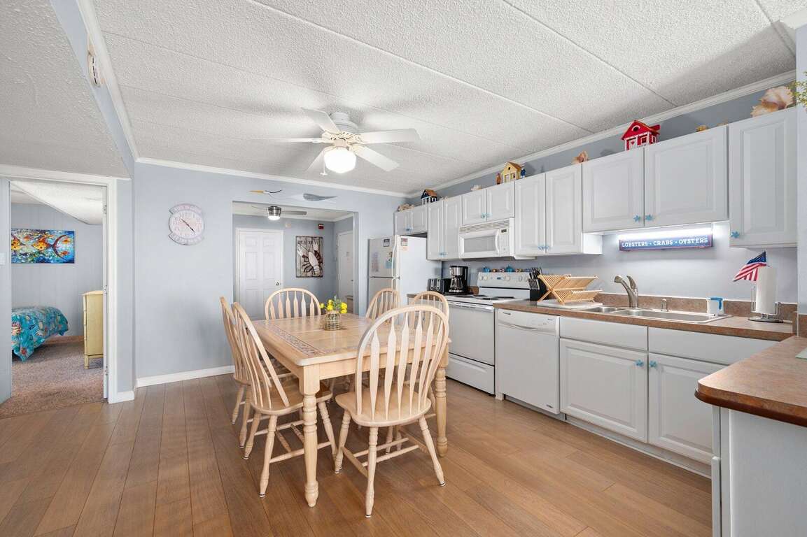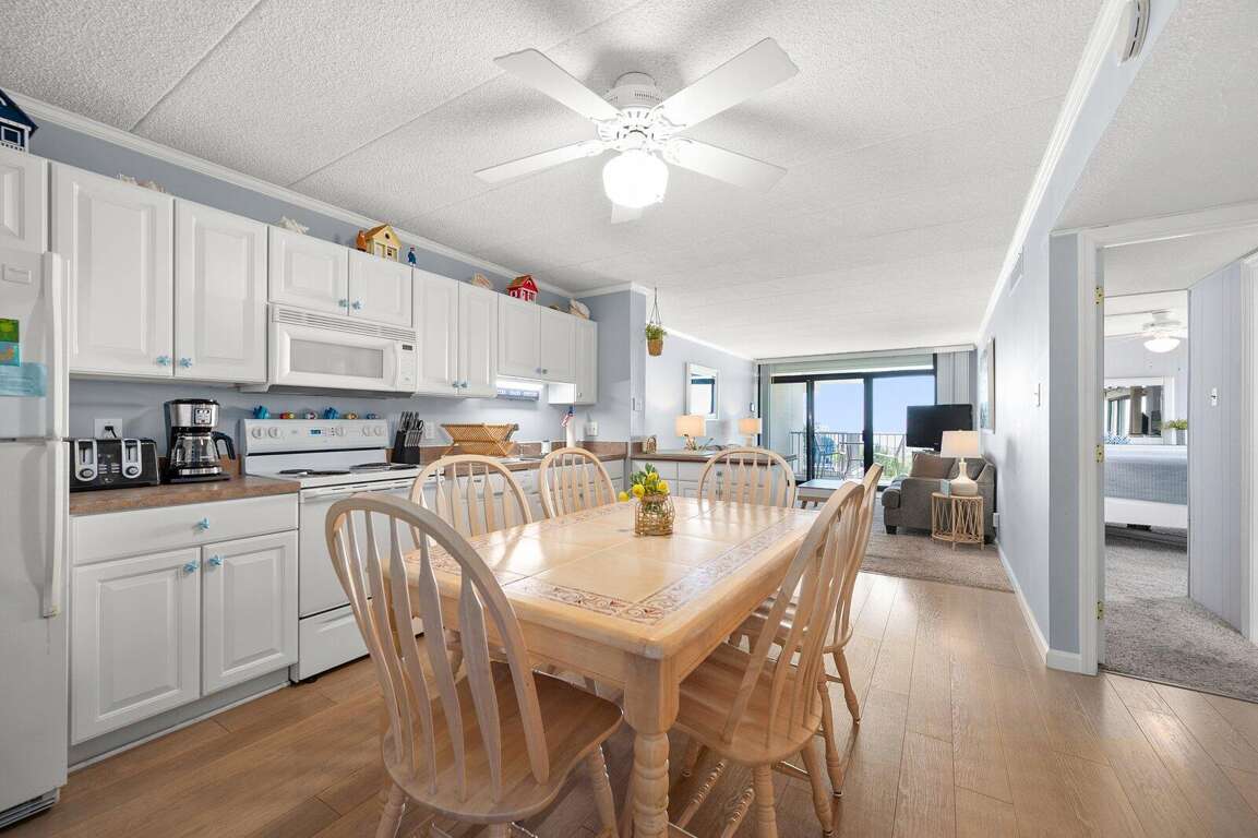 Indulge in a range of modern amenities and features offered at the newly renovated 2-bedroom condo at Sea Terrace 102 in Ocean City, MD, designed to enhance your beachside vacation experience. This oceanfront retreat boasts a spacious layout with direct ocean views, providing a serene backdrop for your stay. Enjoy the convenience of being just steps away from the beach and a heated outdoor pool. Inside, the condo features a fully equipped kitchen, full-size washer and dryer, central air conditioning, and four TVs with free wifi. With a master bedroom featuring a king-size bed, a second bedroom with a queen bed, and additional queen sleeper sofas in the living room and den, this 1200 sq foot condo comfortably accommodates up to 8 guests.