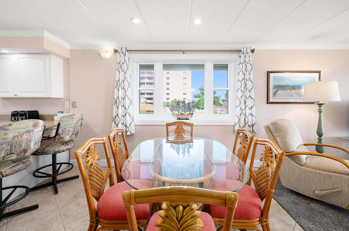 Located conveniently at 66th Street in Ocean City, MD, the Vintage 102 charming 2-bedroom condo is an ideal accommodation choice for families or groups seeking a comfortable and inviting stay near the beach. The condo boasts charming decor that creates a warm and welcoming atmosphere for guests. Additionally, guests can explore a variety of nearby restaurants offering delicious dining options within walking distance from the condo. Whether you're looking for a quick bite to eat or a leisurely dining experience, the proximity of these restaurants adds convenience and enhances the overall vacation experience. Immerse yourself in the coastal charm of Ocean City, MD, while enjoying the comfort and convenience of the Vintage 102 condo.