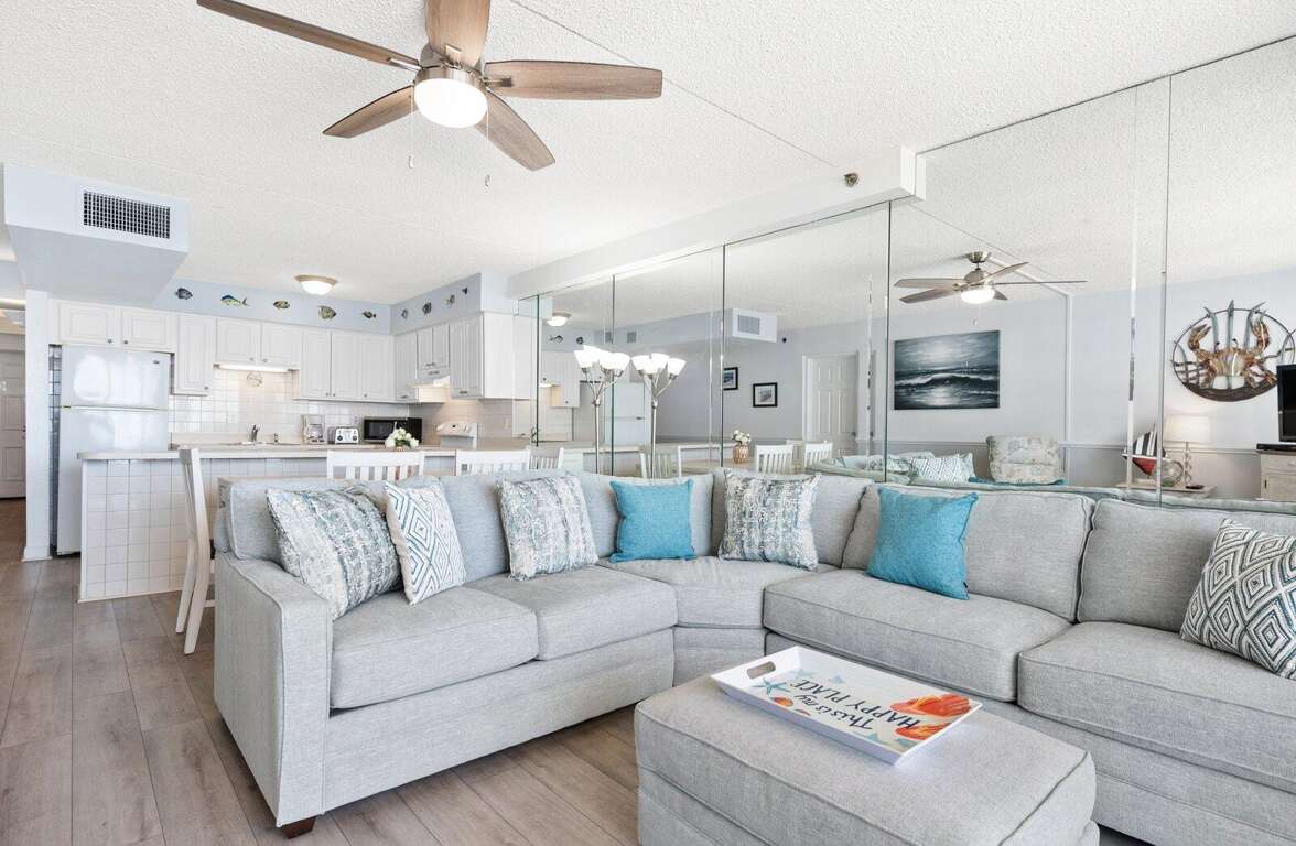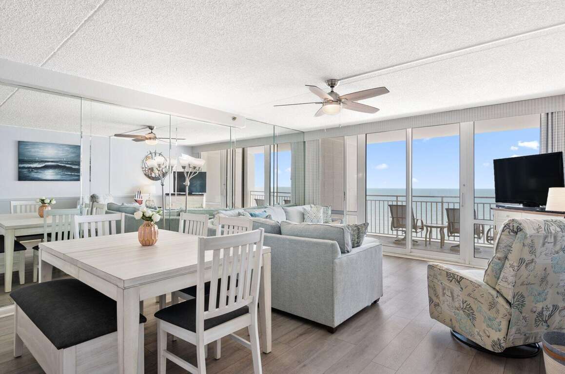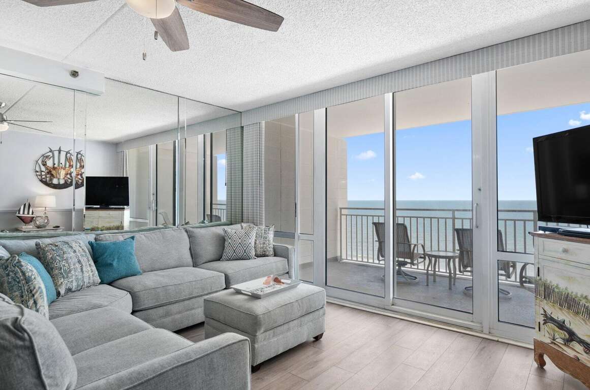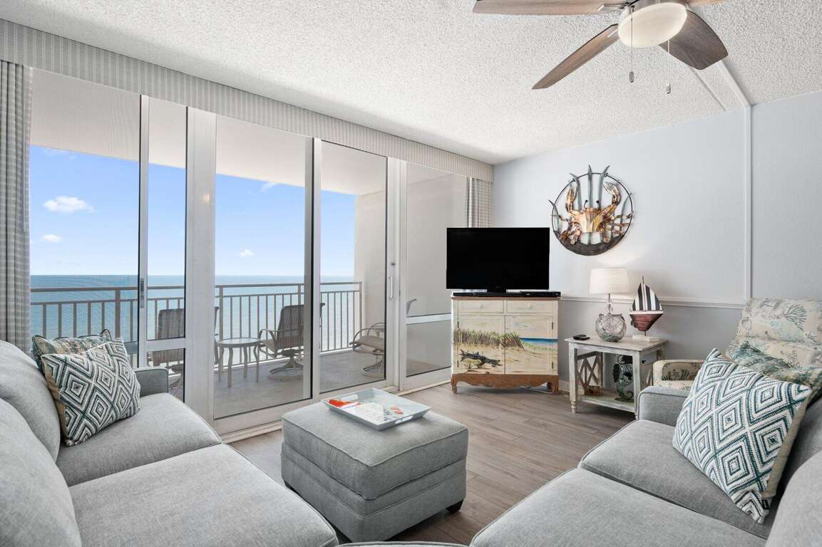 Carousel 1408 – The perfect spot for a fun-filled family getaway, with amenities to satisfy everyone! Located direct oceanfront on the 14th floor, this condo offers endless ocean views and a comfortable 2-bedroom, 2-bath layout. Enjoy access to both indoor and outdoor pools, a kiddie pool, fitness center, saunas, and a children’s play area—all part of the Carousel's fantastic amenities. The unit includes a full kitchen, laundry room, 4 TVs, 2 DVD players, free Wi-Fi, and parking for 2 vehicles. Maximum occupancy is 8. Both the condo and the building are non-smoking. A non-refundable building registration fee is required upon arrival, and pets are not allowed. Please note: Sheets, towels, paper products, and cleaning supplies are not provided. A linen package including sheets and towels is available for an additional fee.