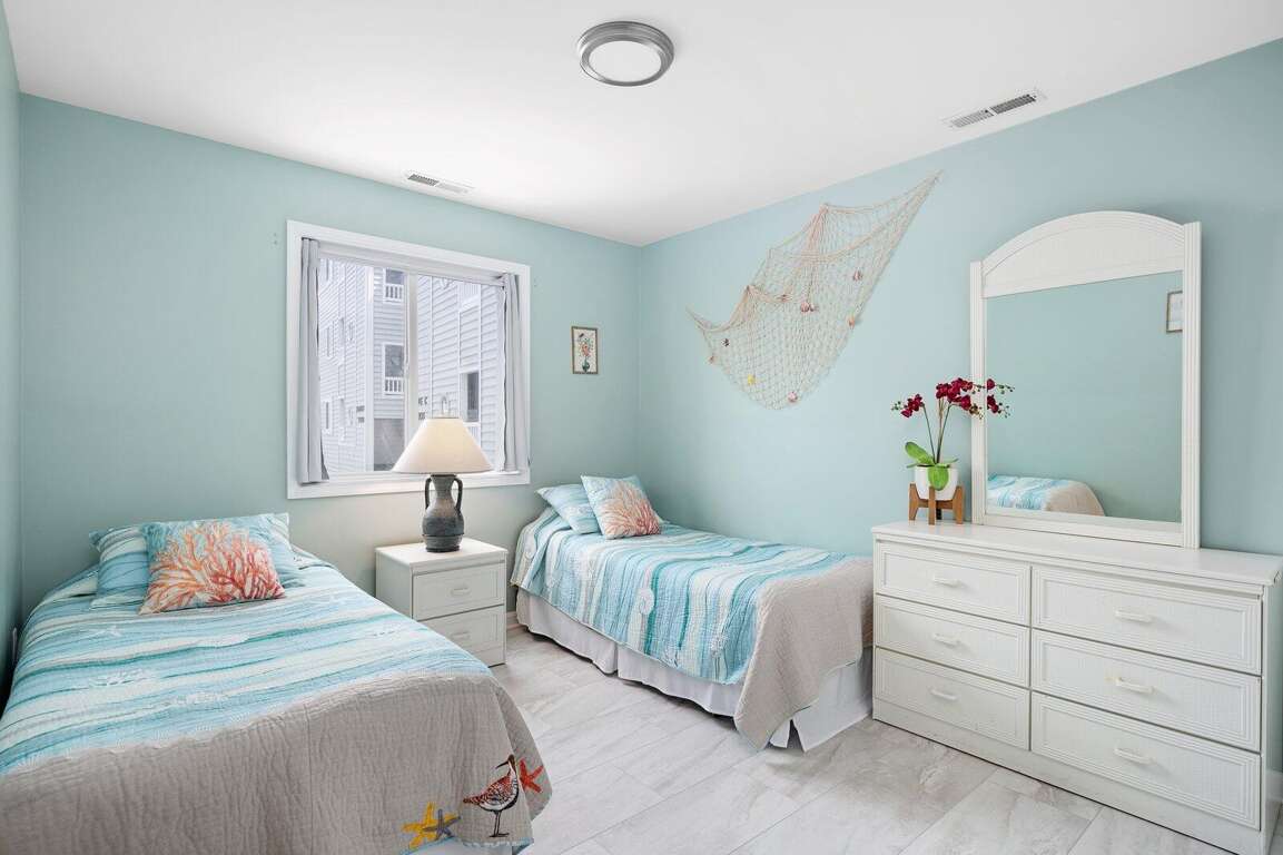 Enjoy your stay in this 3-bedroom, 2-bathroom condo located directly on the bayfront off 22nd Street. Relax on the spacious private balcony while taking in stunning bay sunsets, and enjoy the convenience of being just a short walk from the beach and boardwalk. The outdoor pool is just steps from the unit, and a great selection of restaurants is within walking distance. Bedroom one features a Queen bed, bedroom two has two Twin beds, and bedroom three offers a Double bunk bed (Double on top and bottom) plus an additional Twin. The unit includes Wi-Fi and streaming services on 2 Roku TVsāplease note, there is no cable. Occupancy is 10. One parking space is guaranteed, with a second space available on a first-come, first-served basis. No smoking and no pets. This property rents Saturday to Saturday in the summer, with flexible 3-night stays available in the fall. Please note: Sheets, towels, paper products, and cleaning supplies are not provided. A linen package including sheets and towels is available for an additional fee.