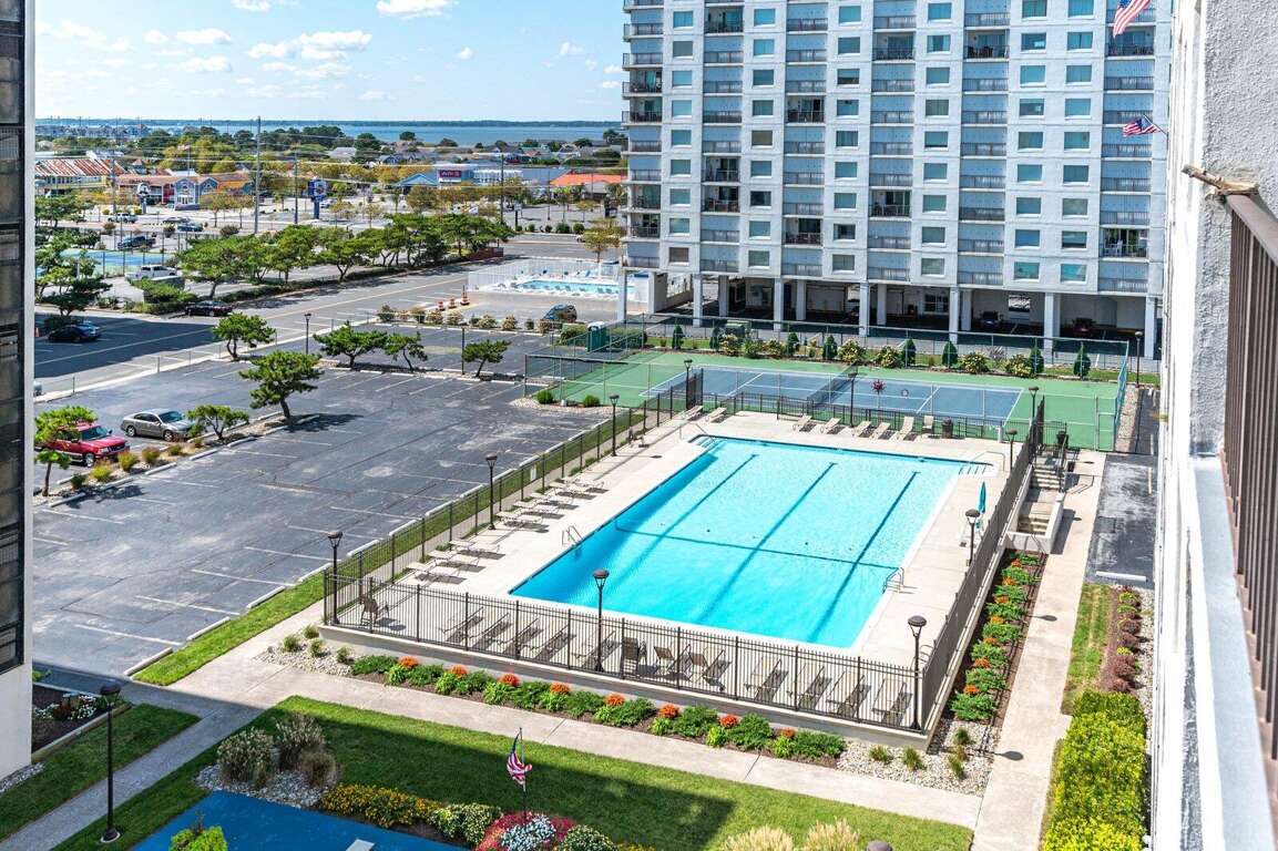 Experience vacation at its best at the Camelot! This oceanfront condo offers a stunning direct view with a wraparound balcony perfect for taking in breathtaking sunsets. The building features one of the largest outdoor pools in Ocean City, MD, along with an outdoor shower, tennis court, and elevator access. This 2-bedroom, 2-bath unit includes a fully equipped kitchen, full-size washer and dryer, and central air conditioning. No smoking or pets allowed. Please note: Sheets, towels, paper products, and cleaning supplies are not provided. A linen package including sheets and towels is available for an additional fee.