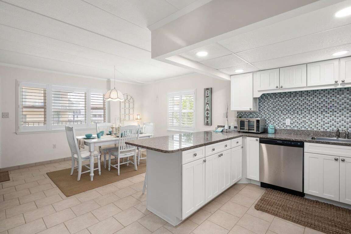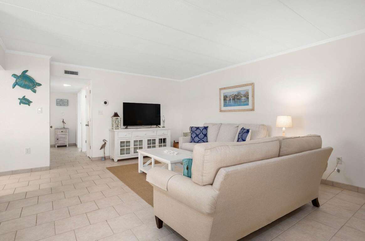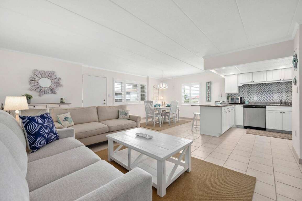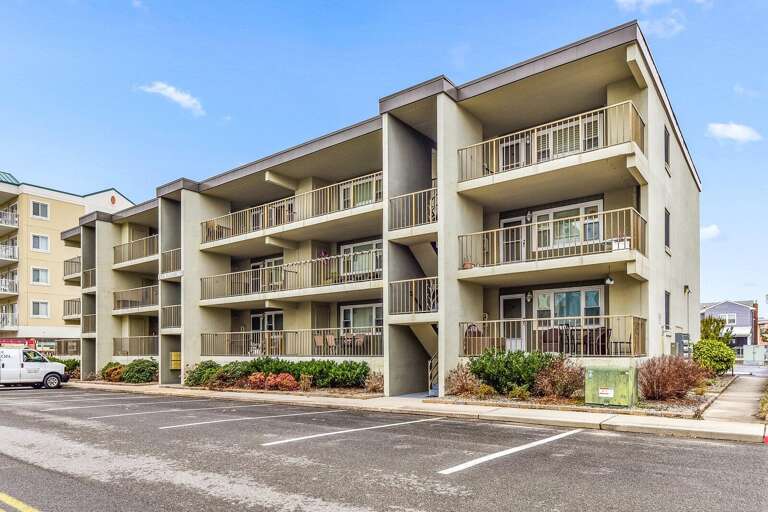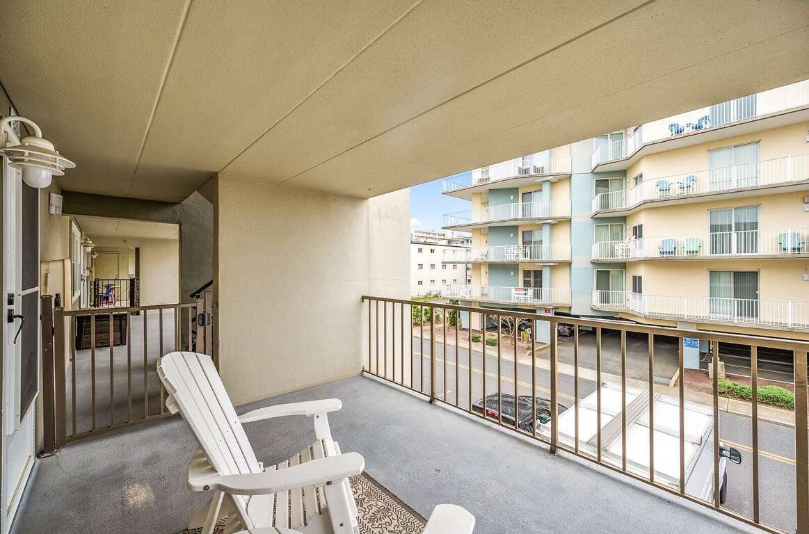 Located just steps from the beach, this second-floor walk-up 2-bedroom, 2-bath ocean block condo offers a prime midtown location within walking distance to restaurants, shopping, mini-golf, nightlife, and Bayside water sport activities. Ideal for families, the unit features a well-equipped kitchen with a cooktop (no oven), countertop air fryer/toaster oven, microwave, and dishwasher, as well as a dining area and comfortable living space for relaxing after a day in the sun. Enjoy added convenience with a front-loading washer/dryer, three Smart streaming TVs, free WiFi, and central A/C. The private west-end balcony provides a great spot to enjoy your morning coffee and take in the laid-back beach atmosphere. This property accommodates up to six guests and includes parking for two vehicles in a private lot, with additional first-come, first-served street parking available. It is non-smoking, pets are not permitted, and offers flexible mini-week rentals of 3, 4, 7, or 10 nights to fit your travel plans. Please note: the balcony closet is not available for guest use.