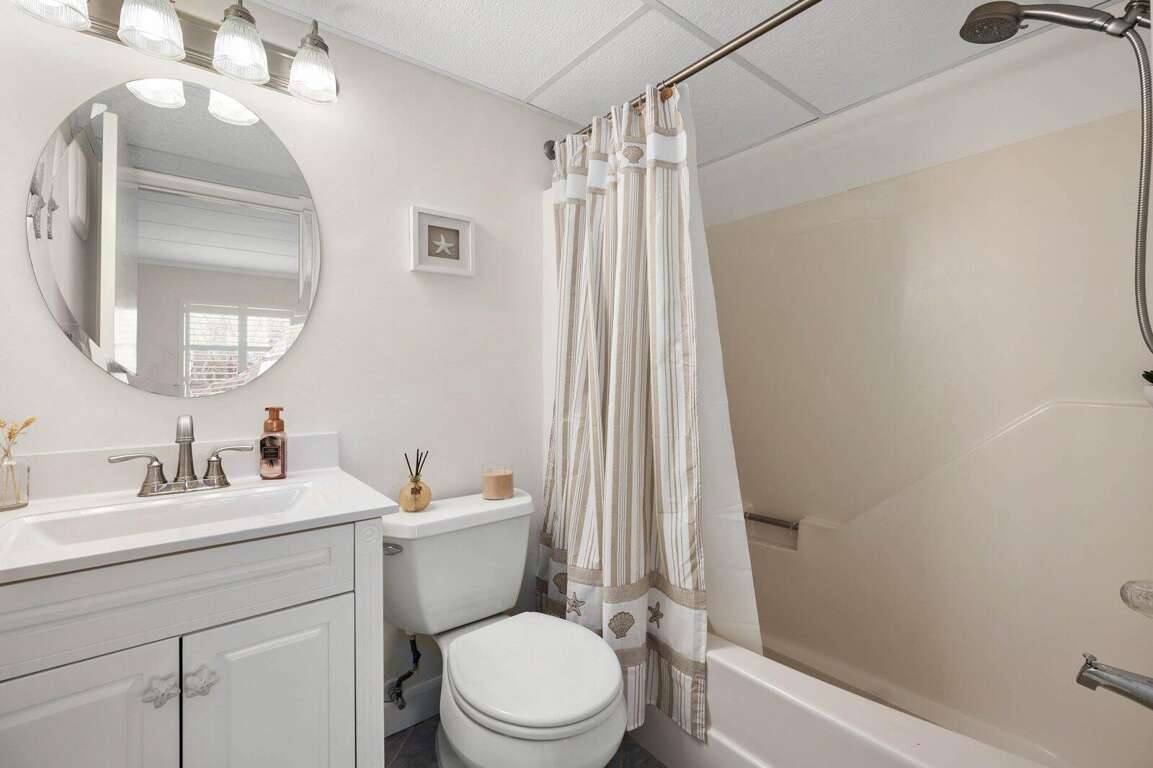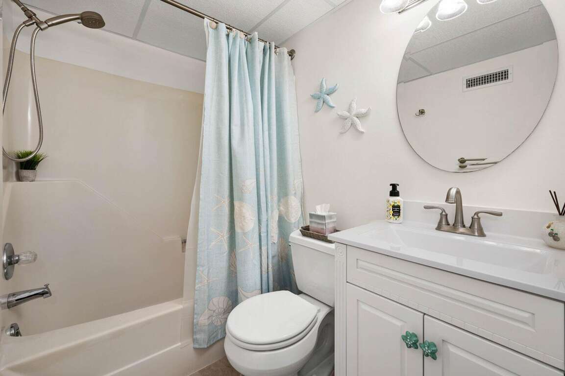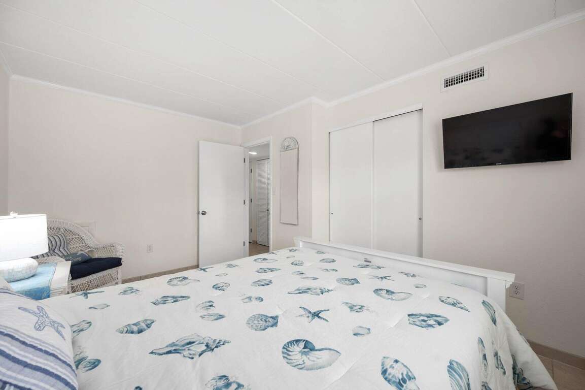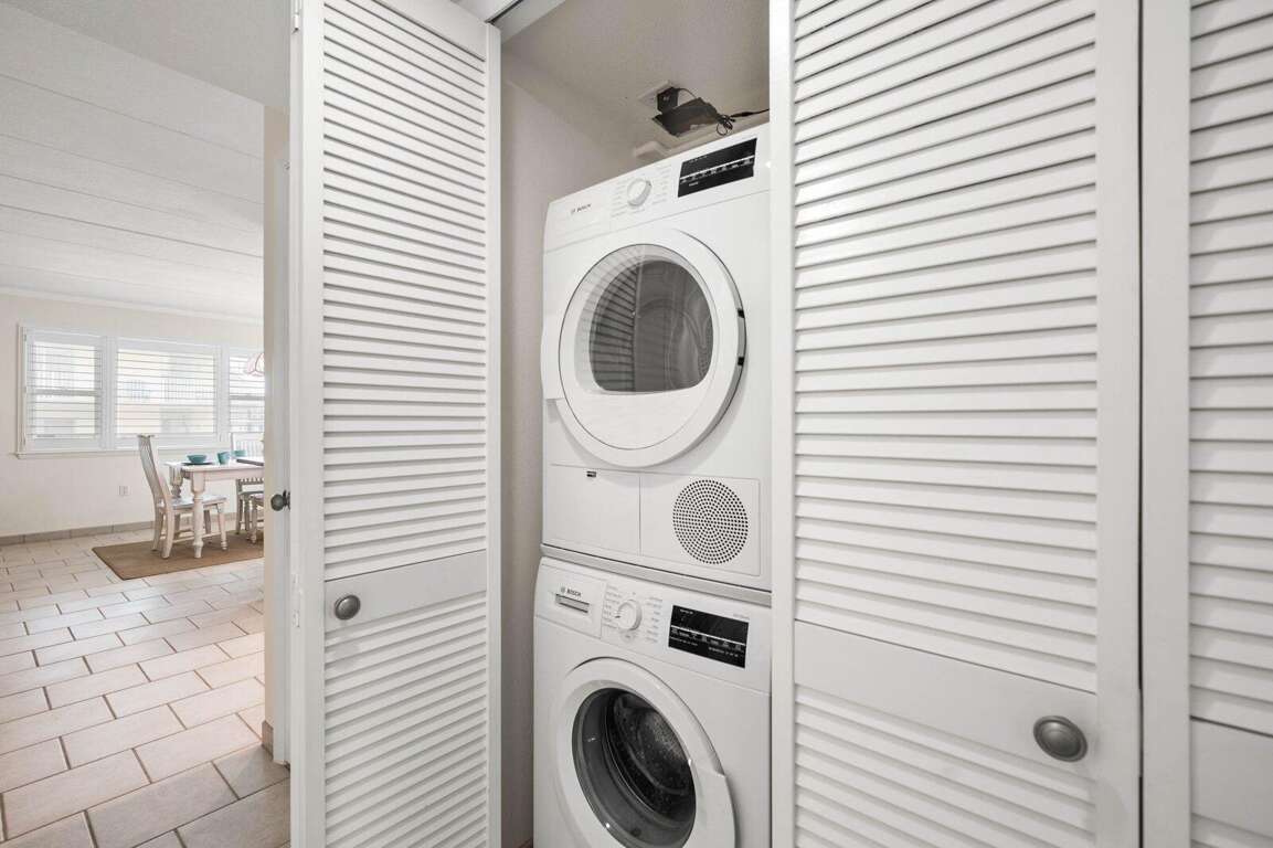 Located just steps from the beach, this second-floor walk-up 2-bedroom, 2-bath ocean block condo offers a prime midtown location within walking distance to restaurants, shopping, mini-golf, nightlife, and Bayside water sport activities. Ideal for families, the unit features a well-equipped kitchen with a cooktop (no oven), countertop air fryer/toaster oven, microwave, and dishwasher, as well as a dining area and comfortable living space for relaxing after a day in the sun. Enjoy added convenience with a front-loading washer/dryer, three Smart streaming TVs, free WiFi, and central A/C. The private west-end balcony provides a great spot to enjoy your morning coffee and take in the laid-back beach atmosphere. This property accommodates up to six guests and includes parking for two vehicles in a private lot, with additional first-come, first-served street parking available. It is non-smoking, pets are not permitted, and offers flexible mini-week rentals of 3, 4, 7, or 10 nights to fit your travel plans. Please note: the balcony closet is not available for guest use.