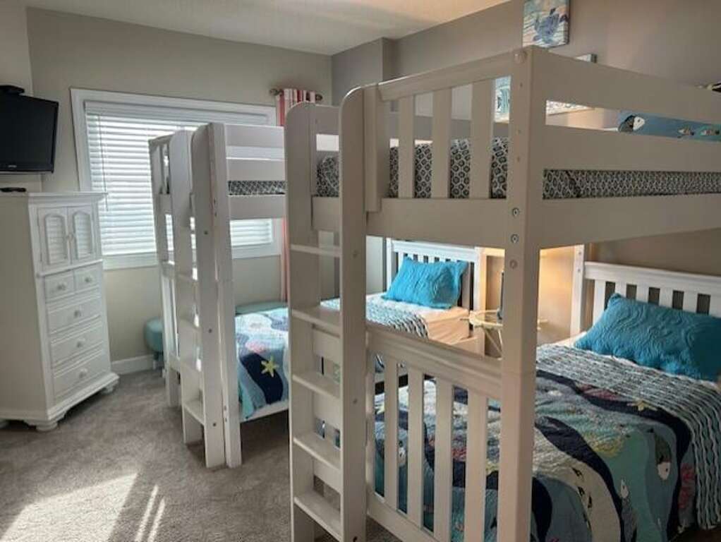 This stunning 3-bedroom, 2.5-bathroom condo offers breathtaking bay views and a spacious private balcony to enjoy the beautiful sunsets. Located just a short walk from the beach and boardwalk, the outdoor pool is conveniently steps away. You'll be surrounded by a fantastic selection of restaurants, all within walking distance. The condo features a King-size bed in both the first and second bedrooms,there are two adult accommodating bunk beds in the third bedroom”, and a Queen sleeper sofa in the living room. With Wi-Fi, streaming services on 4 TVs, and a premium cable package, you'll stay connected and entertained. Accommodating up to 8 guests, the property offers parking for 2 cars. No smoking and no pets are allowed. Rentals are Saturday to Saturday in the summer, with flexible 3-night stays available in the fall. Please note: sheets, towels, paper products, and cleaning supplies are not provided, but a linen package including sheets and towels is available for an additional charge.