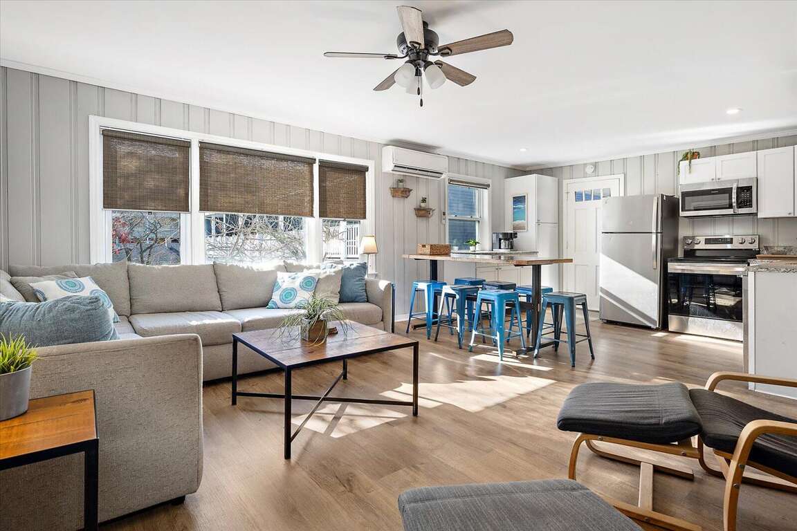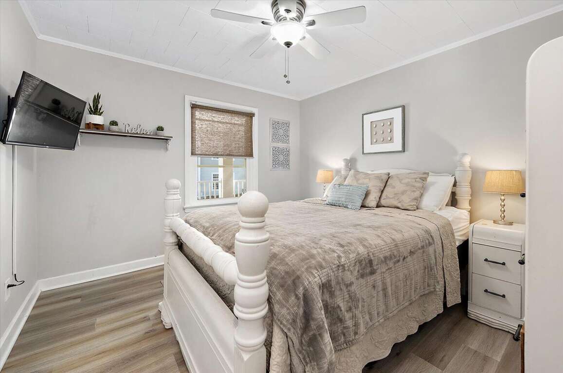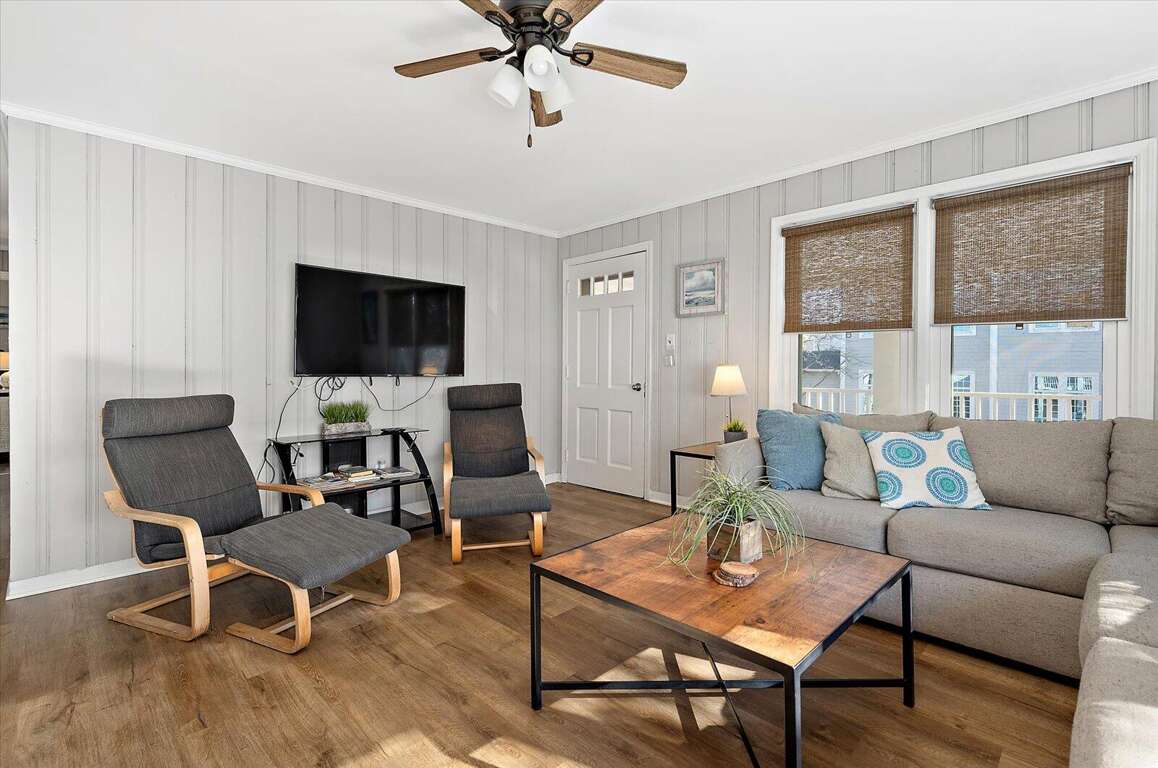 A fantastic find—Old Ocean City charm meets modern updates for a relaxing and enjoyable stay. This 3-bedroom apartment is perfectly located in downtown OC, just a short walk to the beach and boardwalk, and only a block from the White Marlin Open Weigh-In. You'll be close to all the excitement of boardwalk events and music festivals, yet tucked away in a quieter spot ideal for families. Situated in a small building, the unit features a wide balcony and a side yard, offering extra space to relax and unwind. Inside, you'll find 1.5 baths, a full kitchen, washer/dryer, dishwasher, microwave, Wi-Fi, four smart TVs (no cable), and four A/C units to keep things comfortable. With occupancy for up to 8 guests, this non-smoking, pet-free property includes parking for one vehicle. A starter package of soaps and paper products is included for your convenience.