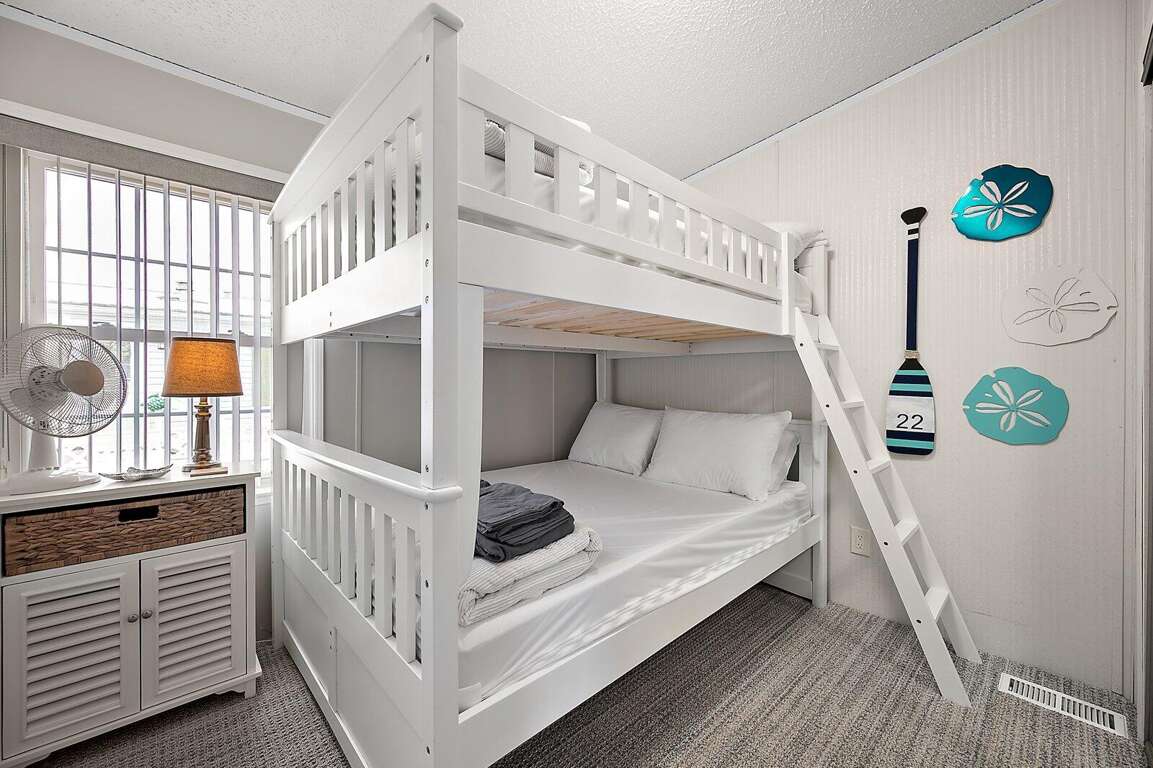 Enjoy your vacation in this lovely home in the gated community of Assateague Pointe. Just recently completely remodeled, let the coastal charm of this 2 bedroom home sweep away your stress! The home offers a queen bed in the main bedroom, a bunkbed of two doubles in the second bedroom, and for extra sleeping, the sofa in the living room opens to a double. There is a kitchen, central a/c, 2 smart TV's available for your streaming services, Free WiFi, and parking for 2 cars. This property also has a delightful courtyard comfortably furnished for those evening family get togethers. The community has 2 beautiful outdoor pools, a clubhouse, a rec room with laundry facilities, stocked fishing ponds, a lighted fishing pier, and various playground and picnic areas. Just a short ride to the beaches at Assateague Island or Ocean City. This property does not allow smoking or animals. Occupancy limit is 8. There is No washer or dryer in unit but there is a laundry room at Rec center. A linen package including sheets and towels can be rented for an extra charge.