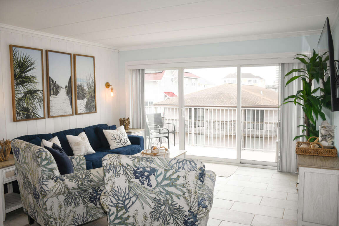 Wildwave 302- So lovely and so relaxing! This third floor 2 bedroom unit offers a gorgeous ocean view, and just steps to the beach, perfect for the family! Enjoy a fully equipped kitchen, and living area for the family to congregate. Condo is fully equipped, and comes with 3 streaming capable TV's, Free WiFi, central a/c, and parking for 1 car. Cross the dunes, and there is the beach and ocean. The condo has accommodations for 7, and is a Non Smoking condo in a non smoking building, animals are prohibited. Check in at 3PM.