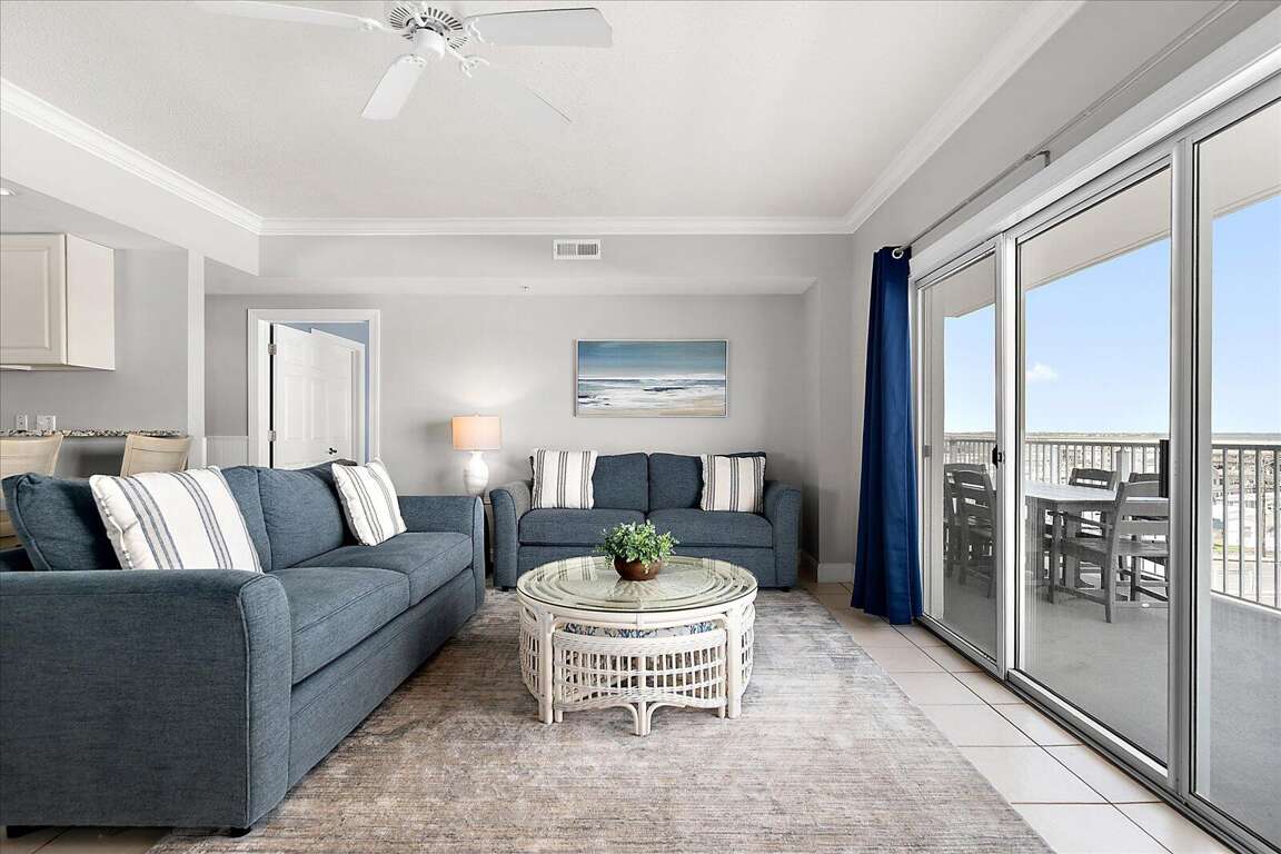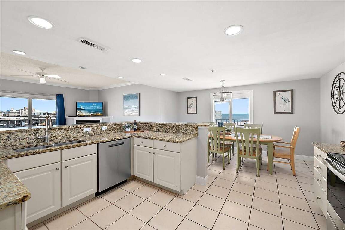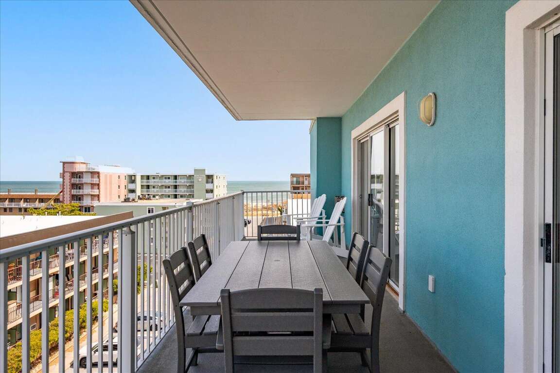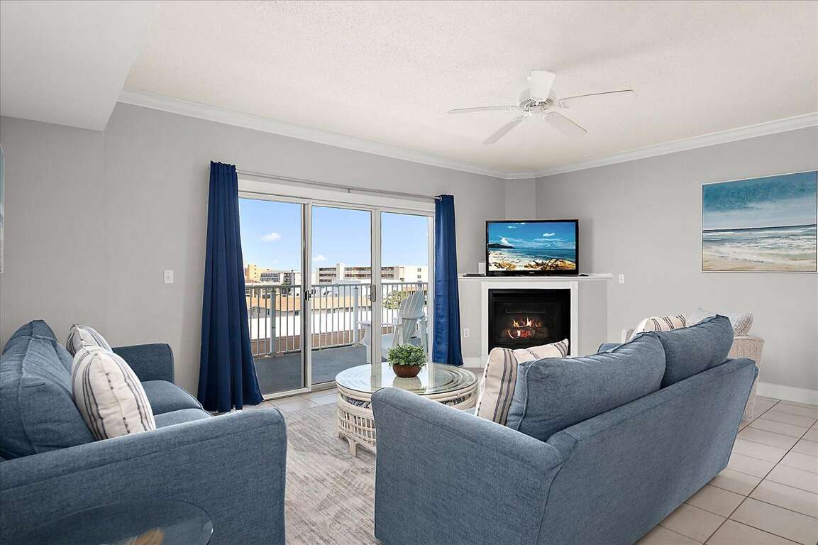 Enjoy both ocean and bay views from this well-appointed unit, designed for relaxing beach vacations. The open living space is bright and inviting, featuring brand-new family room furniture for 2026, including two full-size sofas鈥攑erfect for gathering after a day in the sun. Step outside to a large private balcony complete with an outdoor dining table and Adirondack chairs鈥攑erfect for morning coffee or evening relaxation. Stay entertained with 5 TVs equipped with streaming services and 3 DVD players throughout the condo.