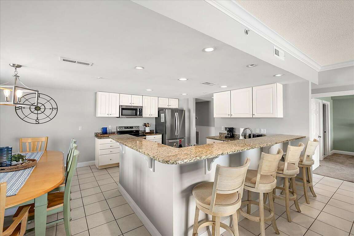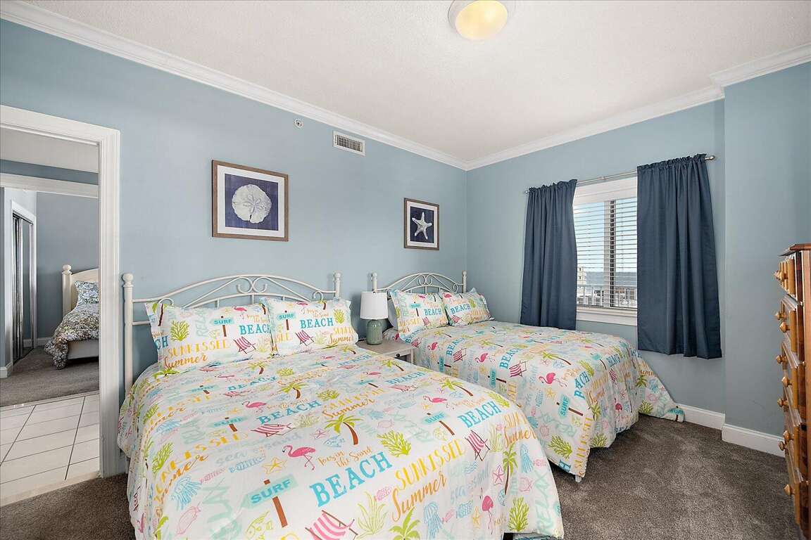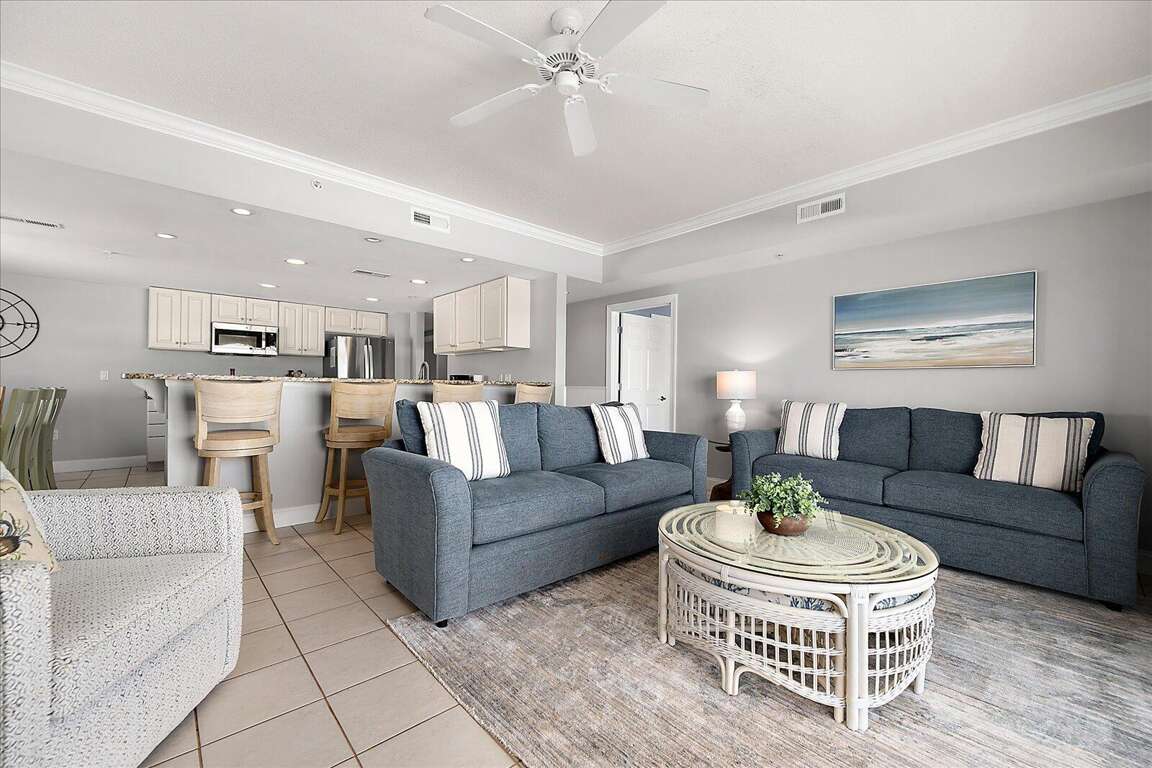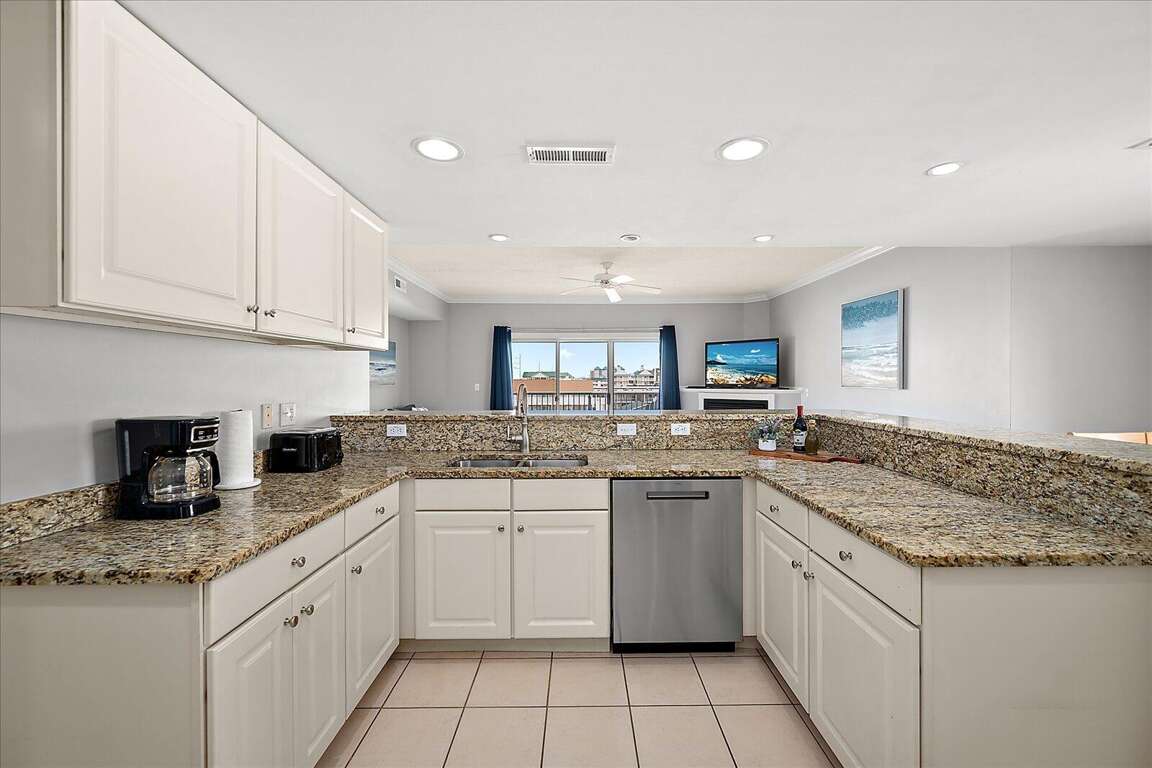 Enjoy both ocean and bay views from this well-appointed unit, designed for relaxing beach vacations. The open living space is bright and inviting, featuring brand-new family room furniture for 2026, including two full-size sofas鈥攑erfect for gathering after a day in the sun. Step outside to a large private balcony complete with an outdoor dining table and Adirondack chairs鈥攑erfect for morning coffee or evening relaxation. Stay entertained with 5 TVs equipped with streaming services and 3 DVD players throughout the condo.