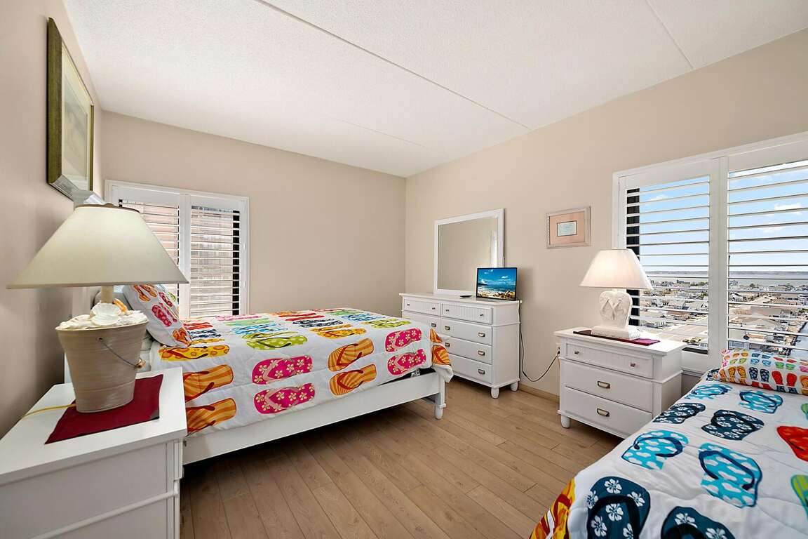 Enhance your relaxation and enjoyment at the Dream Vacation Rental in Ocean City, MD with its array of comfort and entertainment features designed to elevate your stay. This relaxation retreat offers a king-size bed, large jacuzzi, and a private balcony where you can unwind and take in the stunning oceanfront and bay views. For fun-filled activities, enjoy watching your favorite shows on the 2 TVs/VCRs or DVD player provided. The fully equipped kitchen with new appliances allows you to prepare meals with ease. Whether you're looking to relax or be entertained, Rainbow 1109 has everything you need for a memorable vacation experience. Let go of your worries and immerse yourself in a world of comfort and enjoyment.
