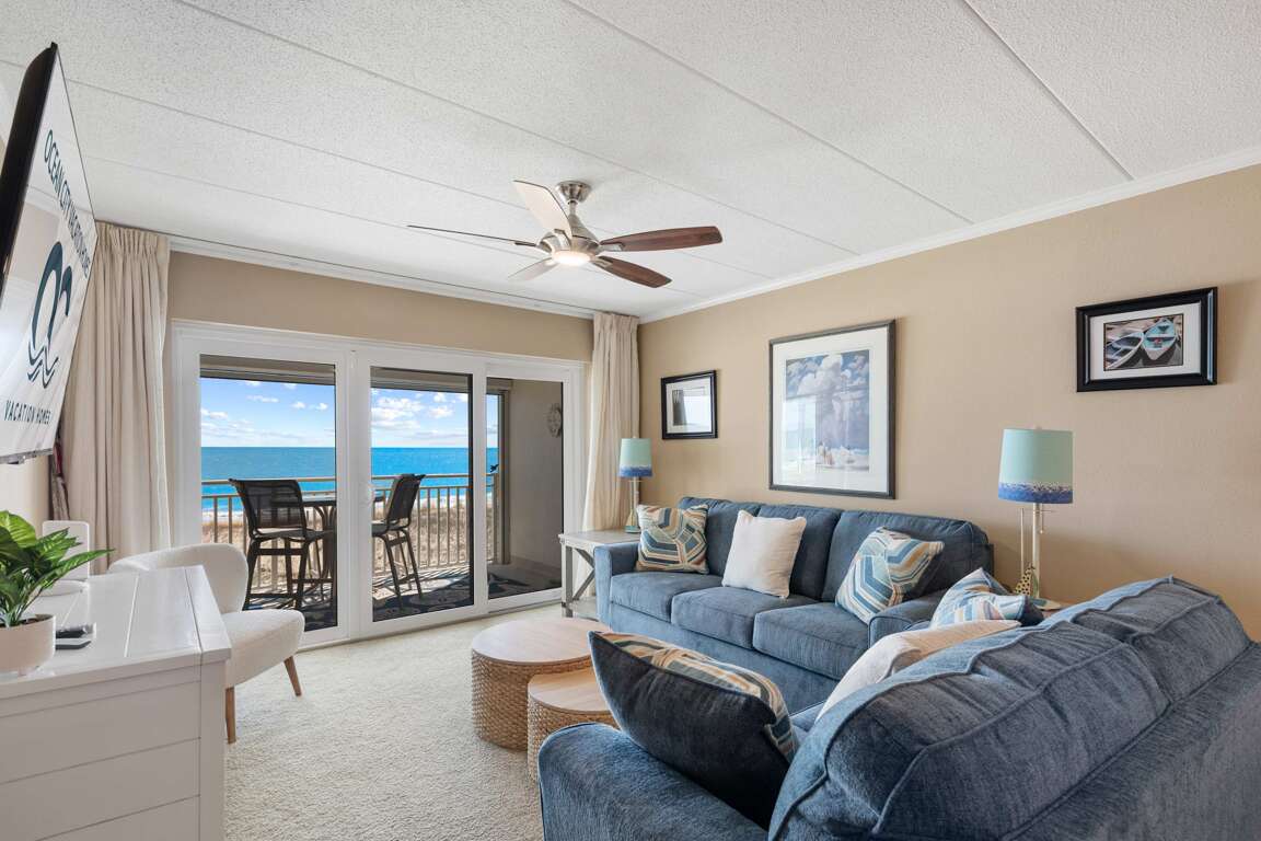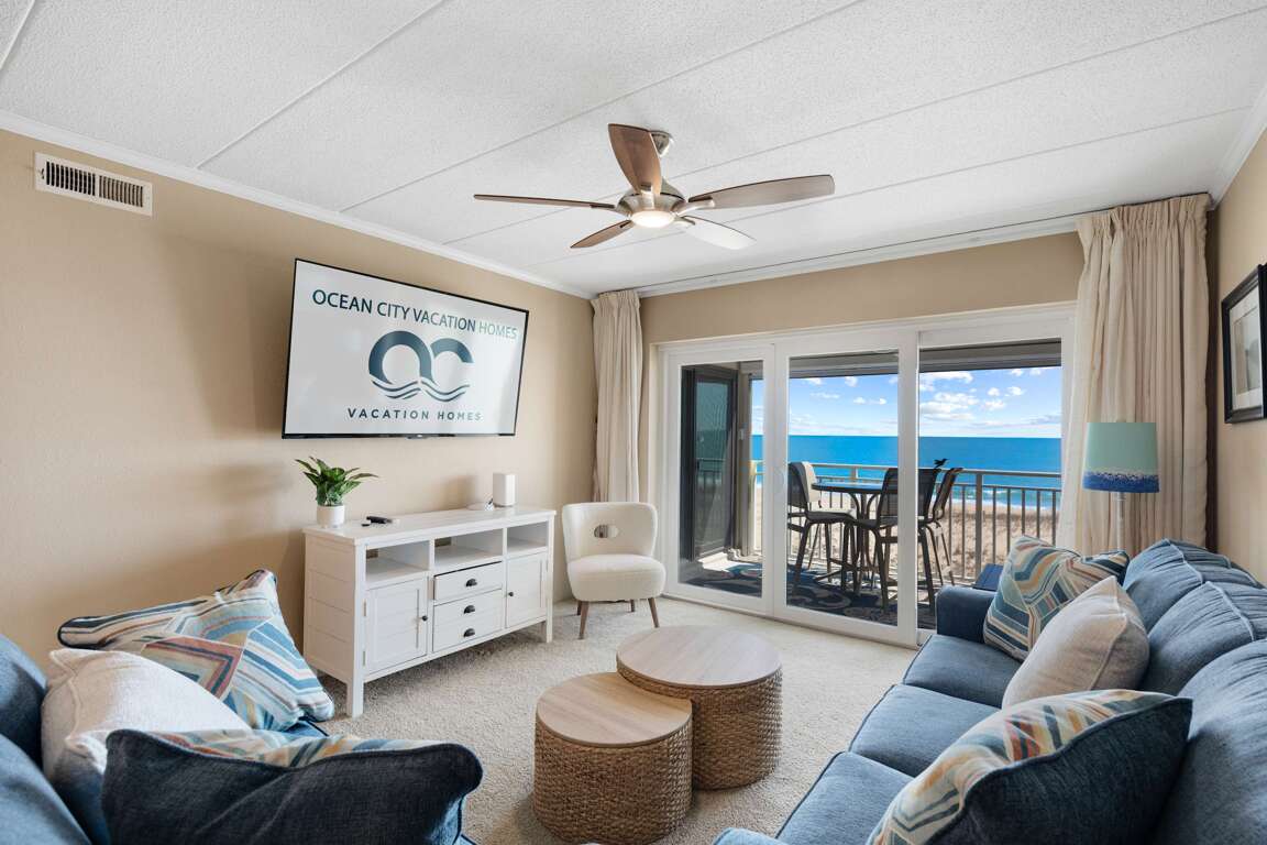Wake up to the sound of the waves and panoramic Atlantic views at Salty Sands Oceanfront 2-Bedroom, a bright second-floor retreat with room for the whole family. Located steps from the sand on 45th Street, this stylish condo offers a private balcony for sunrise coffee and evening cocktails plus modern comfort throughout.