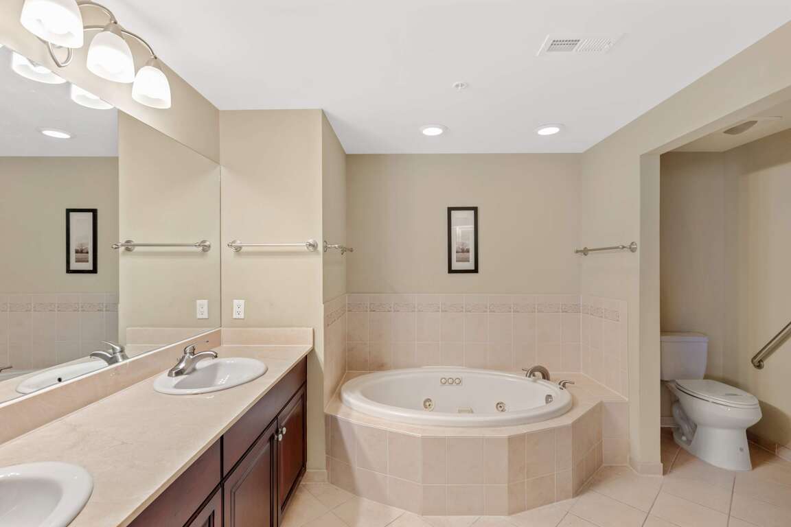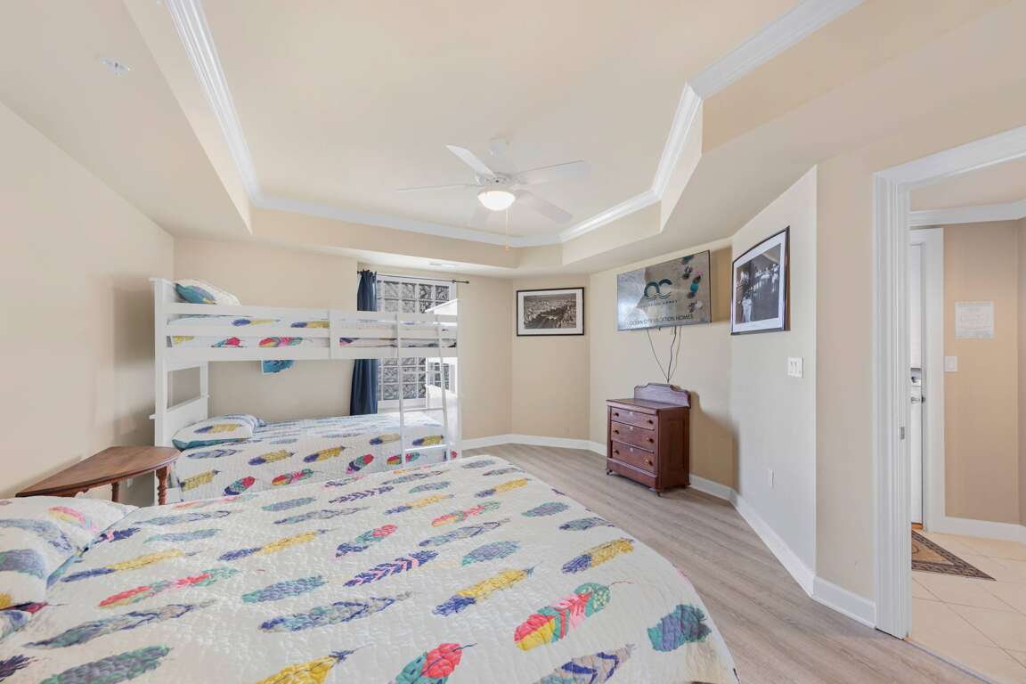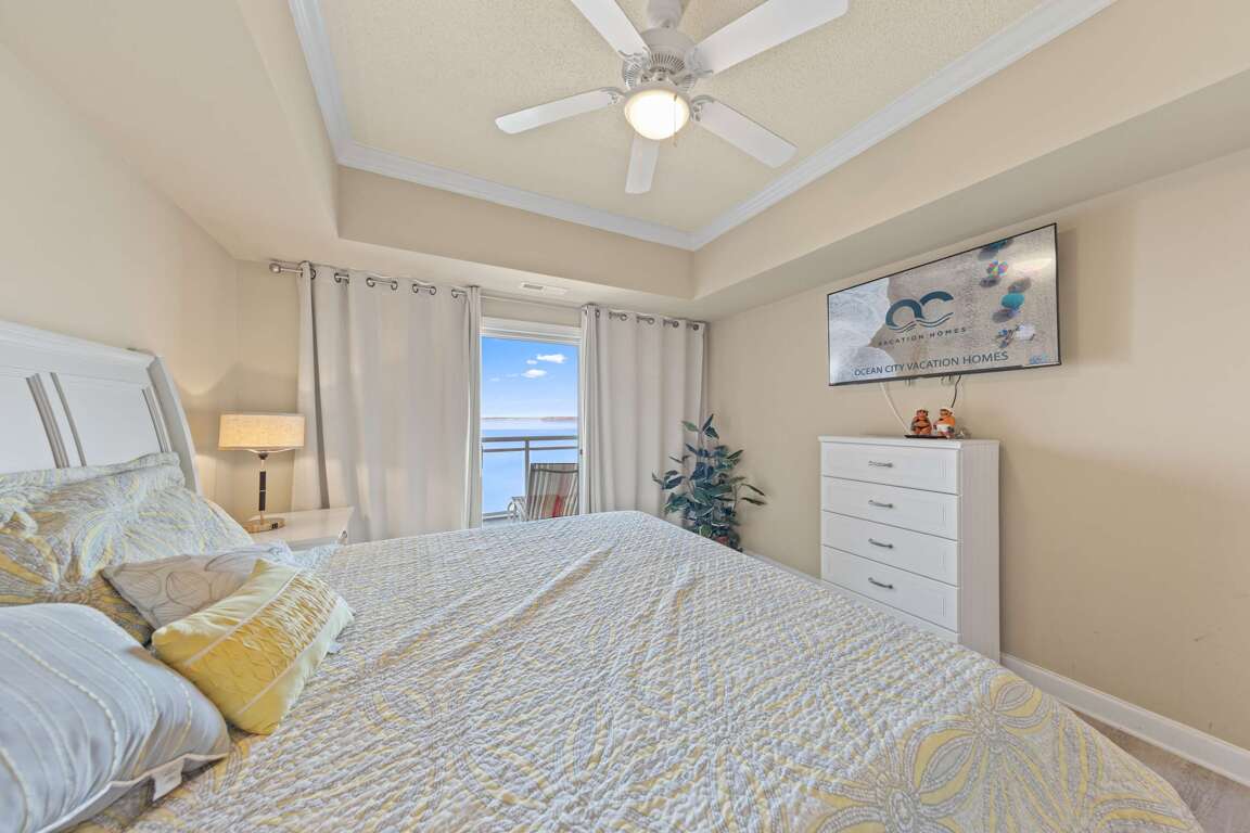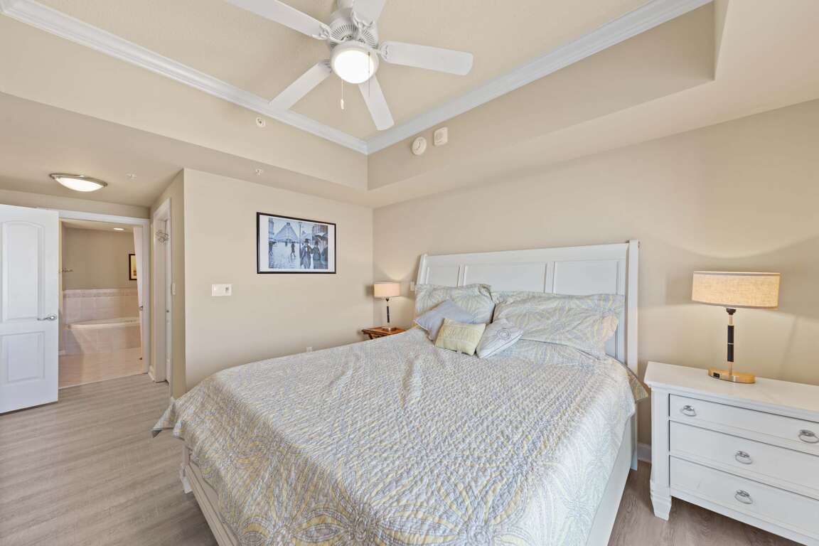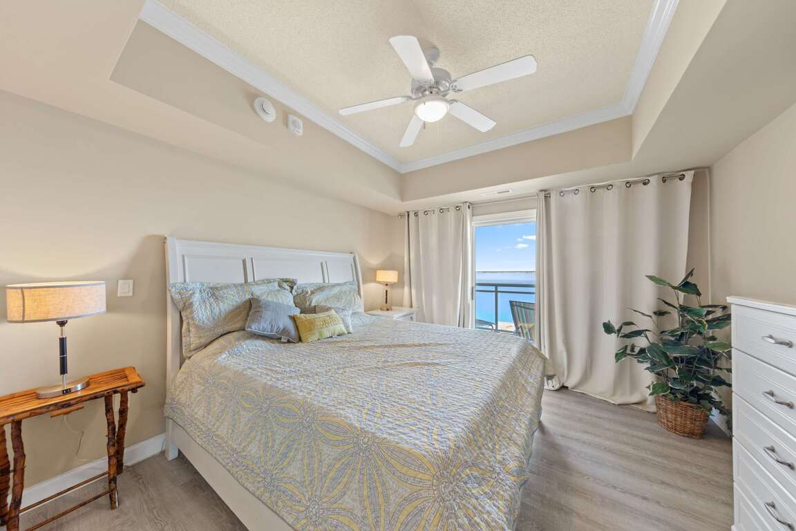 Each bedroom is a private suite with its own bathroom, giving everyone space to unwind. The building’s indoor and outdoor pools—including a bayfront pool with grilling areas—make it easy to enjoy summer days, while the convenient elevator and two parking spaces ensure a smooth, stress-free stay.