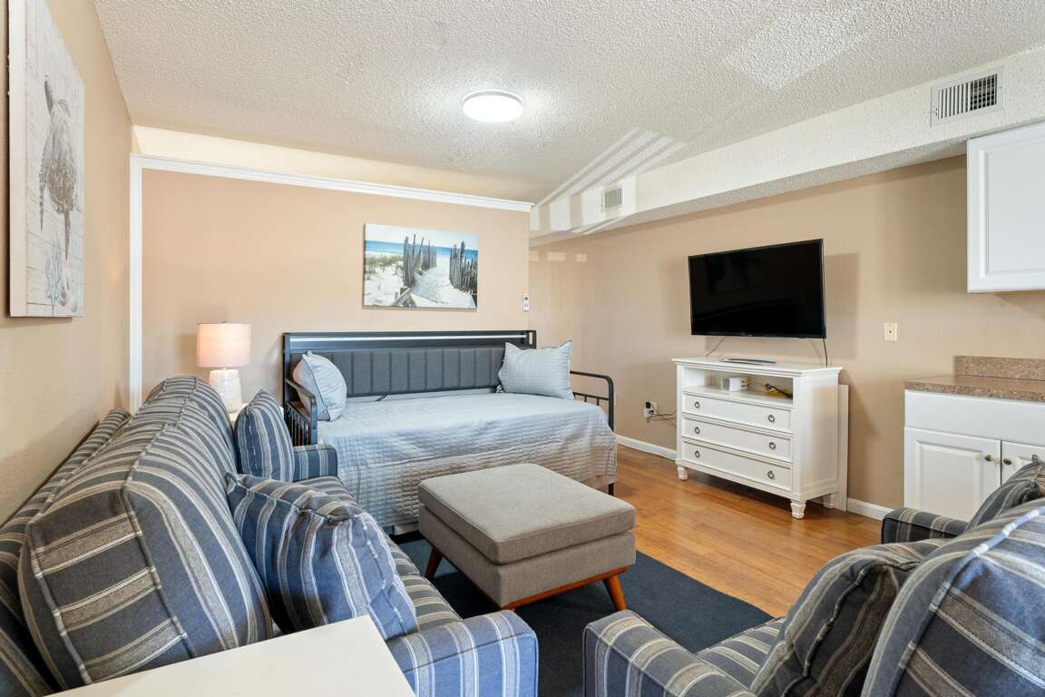 Welcome to this Ocean Side condo, perfectly located just minutes from the beach, this cozy coastal hideaway is ideal for couples, small families, or a group of friends looking for a relaxing stay. Inside, you’ll find a bright and inviting living space with a queen-size sofa bed, a single daybed, and a private bedroom featuring a comfy queen bed. Escape to comfort and convenience at Siesta Villa, a charming 1-bedroom, 1-bathroom retreat that comfortably sleeps up to 5 guests.
