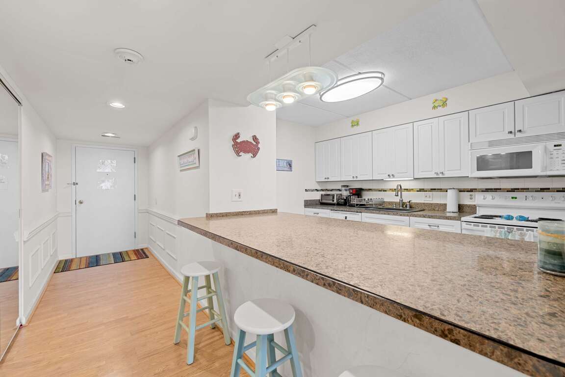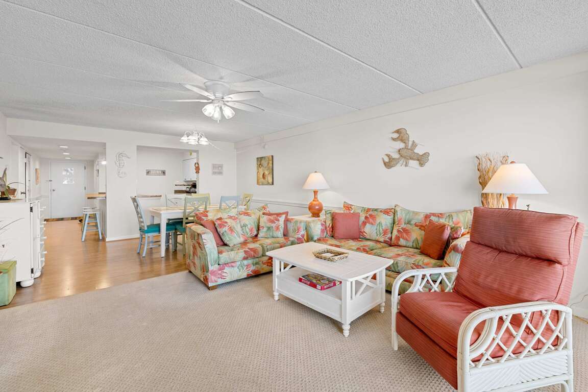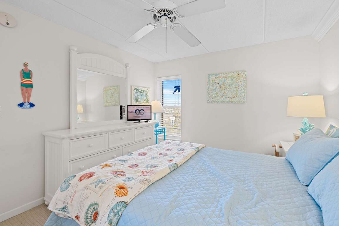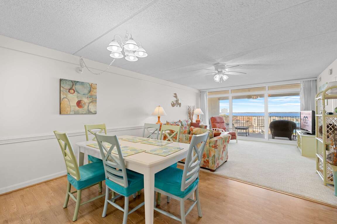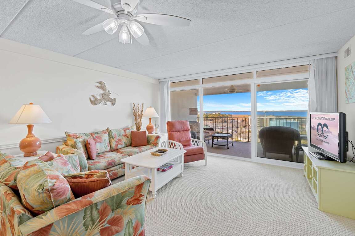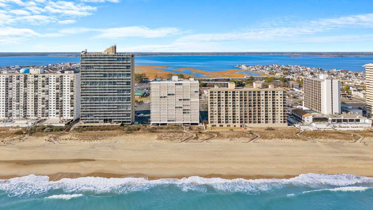 Soak in sweeping bay views from English Towers 802, a bright and spacious 3-bedroom condo just steps from the beach. Located in a well-maintained ocean block building with elevator access, this 8th-floor retreat features a large private balcony, open-concept living area, and unbeatable Assawoman Bay sunsets. Enjoy cozy evenings with 4 streaming-capable TVs, cook meals in the fully stocked kitchen, or head out to the sand and surf just across the street.