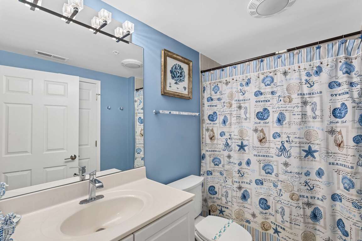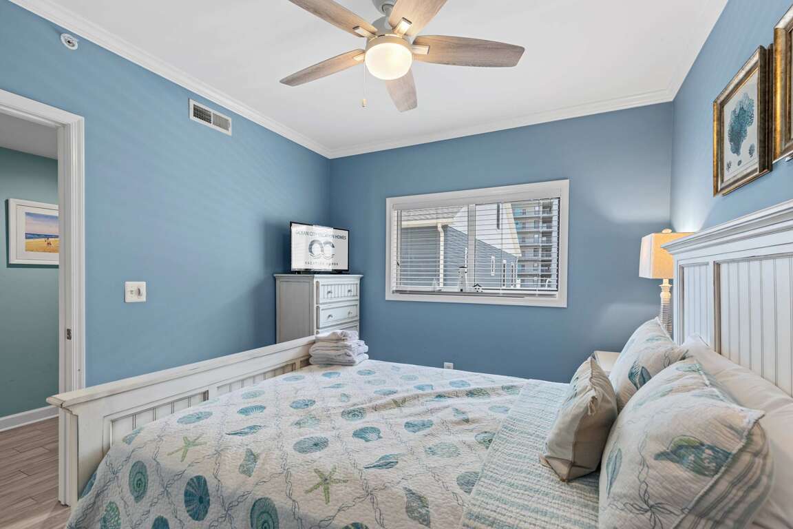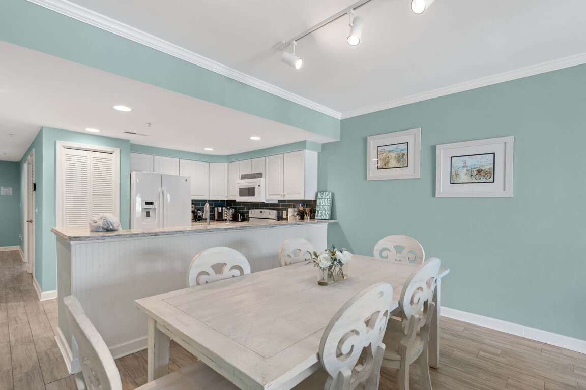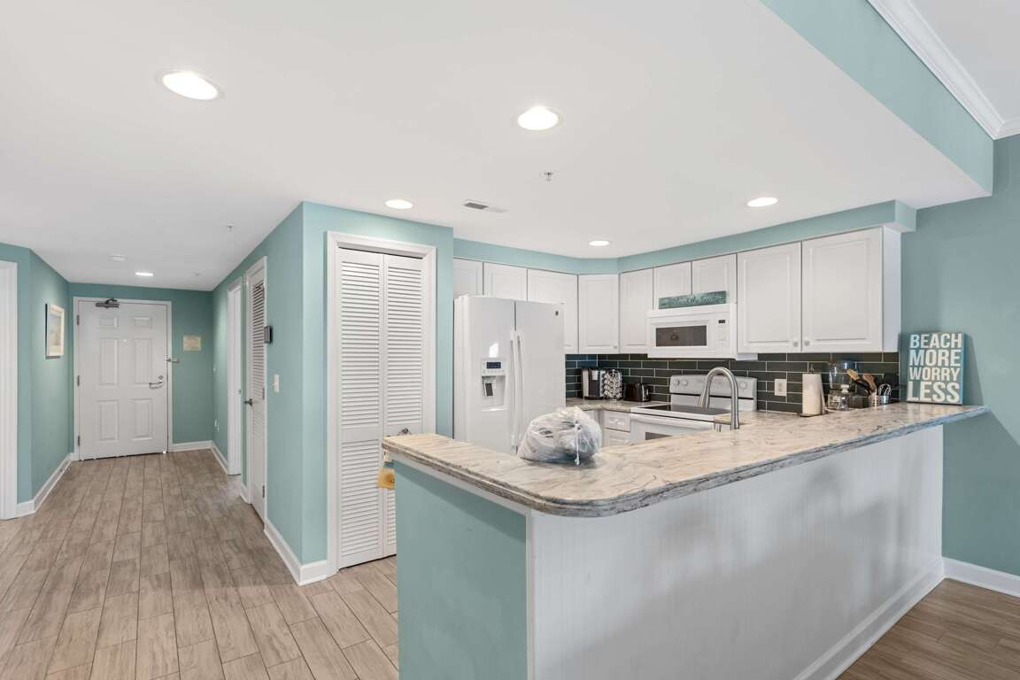 Step into the open-concept living space, where your group can gather for meals or unwind after a day on the sand. Slide open the glass doors to access the furnished balcony and enjoy refreshing ocean breezes with your morning coffee. The kitchen is fully stocked for home-cooked meals and includes a Keurig for your favorite K-cups.