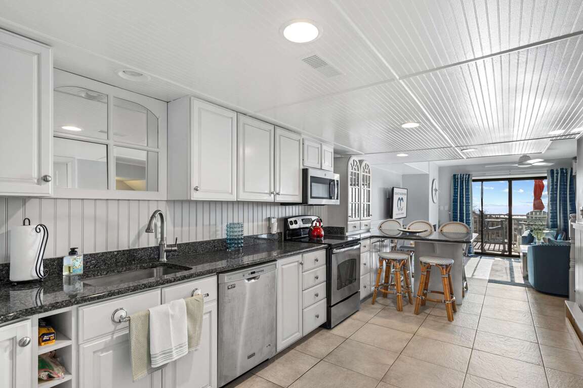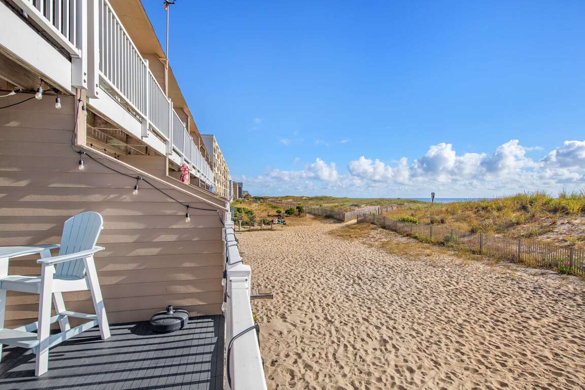 This professionally decorated oceanfront townhome is the perfect setting for your next family getaway! Recently refreshed with new paint, stylish vinyl flooring upstairs, and updated furnishings and decor throughout, every room has been thoughtfully curated for comfort and relaxation. The fully equipped kitchen features stainless steel appliances, granite countertops, and all the essentials for meal prep after long beach days. The first bedroom is on the main level and includes a queen bed with a twin trundle—ideal for flexible sleeping arrangements. Upstairs, the second bedroom offers a queen bed and a twin bunk with an additional trundle. The spacious primary suite boasts a king bed, ensuite full bath, and a dedicated work desk with breathtaking ocean views—perfect for catching up on work or simply enjoying the scenery. Enjoy added comforts including TVs in every bedroom, split-system A/C units, a washer and dryer, high-speed Wi-Fi, and a private outdoor shower for rinsing off after the beach.
