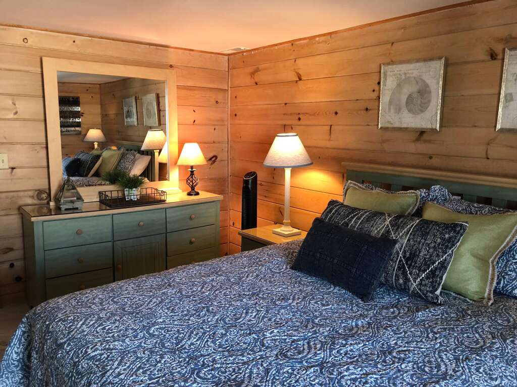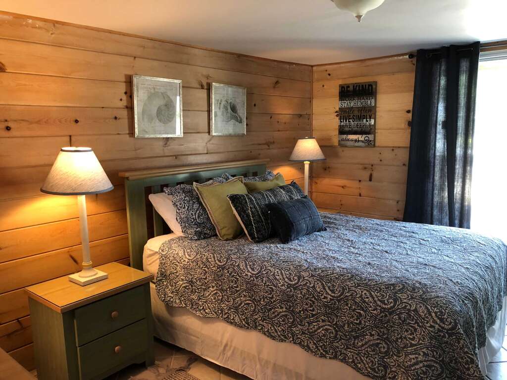 ✹ Bedroom 1 (First Floor): Queen bed + ensuite bath + patio access