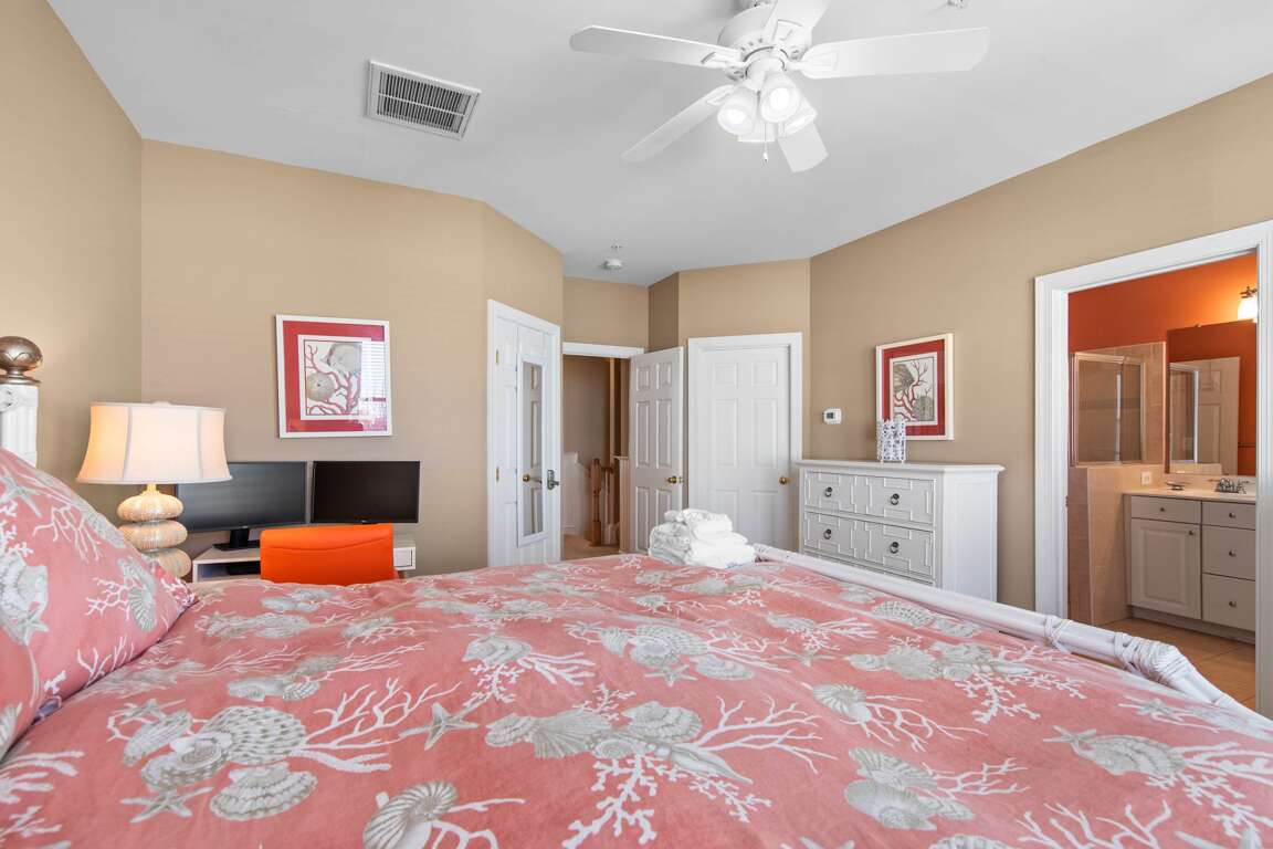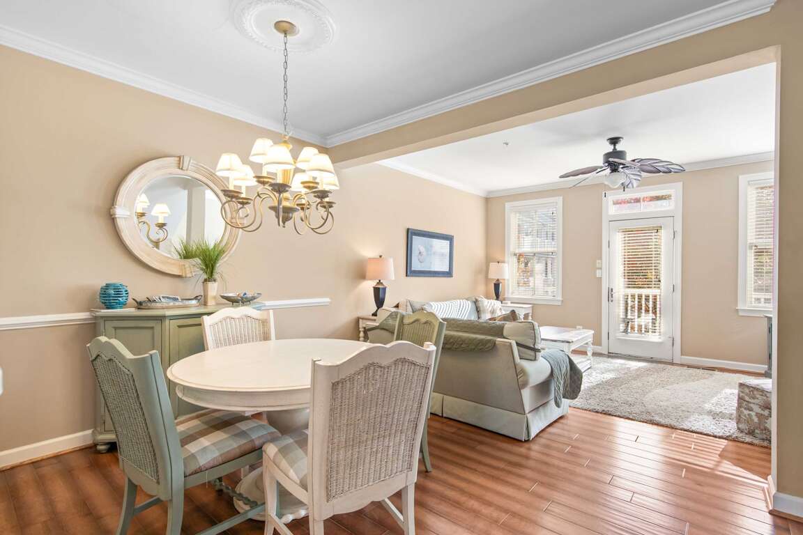 The fully equipped kitchen features stainless steel appliances, a morning room, and all the cookware you’ll need for in-home dining. Relax in the inviting living area or retreat to one of the private bedrooms, each designed for comfort. Guests will enjoy resort amenities including indoor and outdoor pools, a fitness center, private beaches, walking trails, and fishing/crabbing piers.