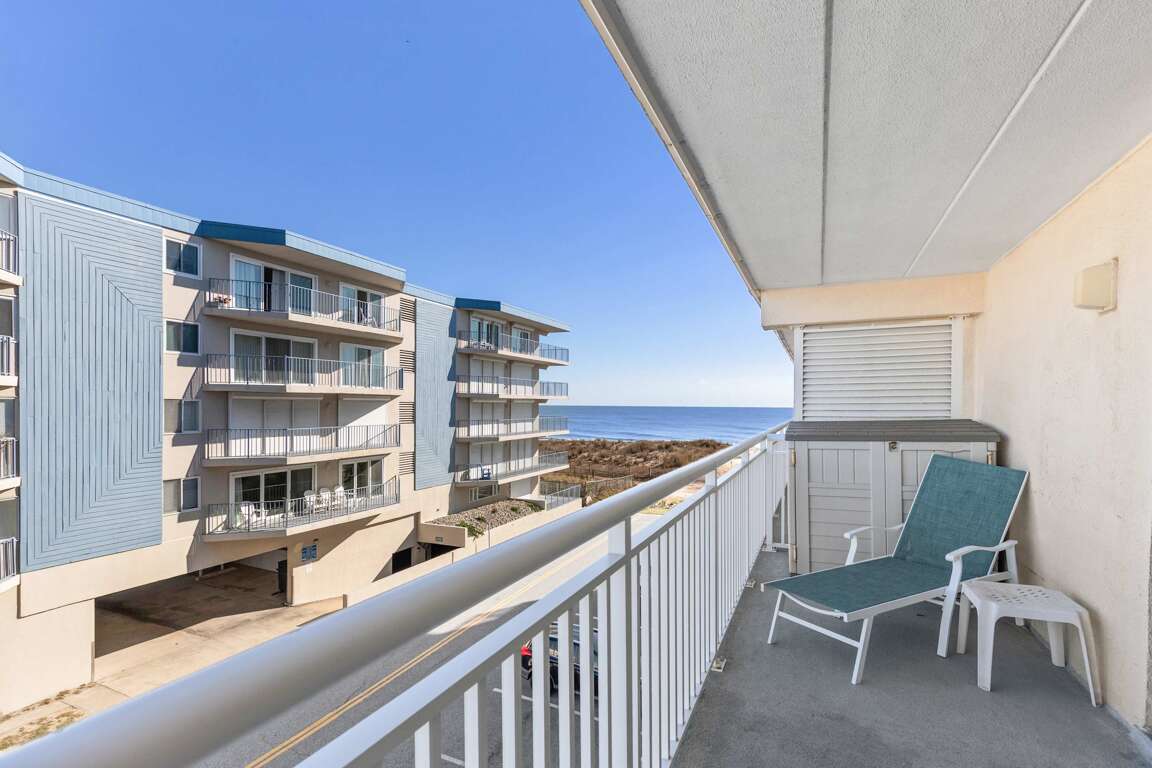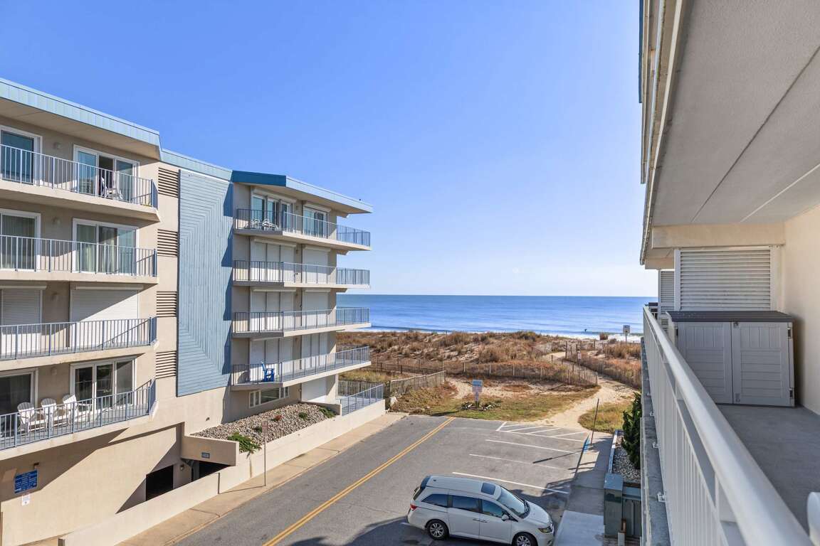 Welcome to Diamond Beach 317, where high-end finishes meet oceanfront living. This updated two-bedroom, two-bath end-unit condo offers sweeping indirect ocean and bay views, privacy from its exterior wall windows, and a spacious 26-foot balcony with pub and director’s chairs for soaking in the scenery.
