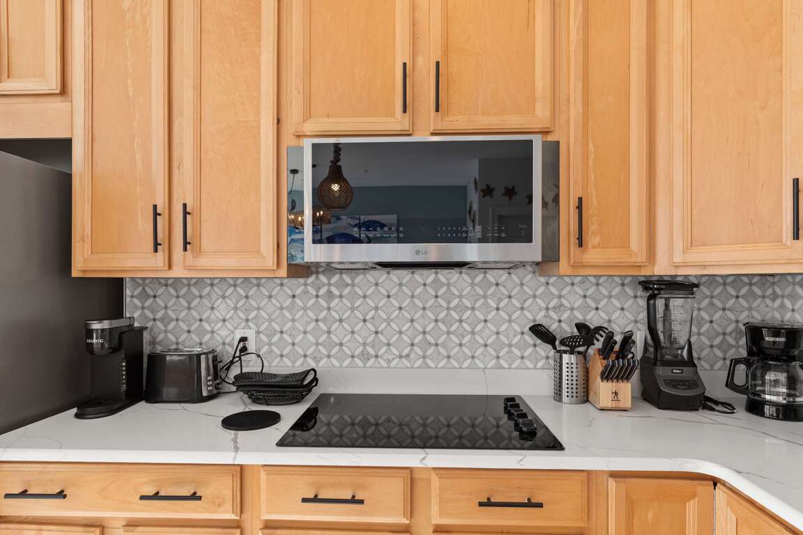 ✔ Fully equipped kitchen w/ quartz counters, stainless appliances, Keurig & drip coffee makers, blender & more