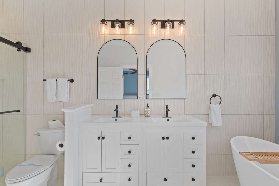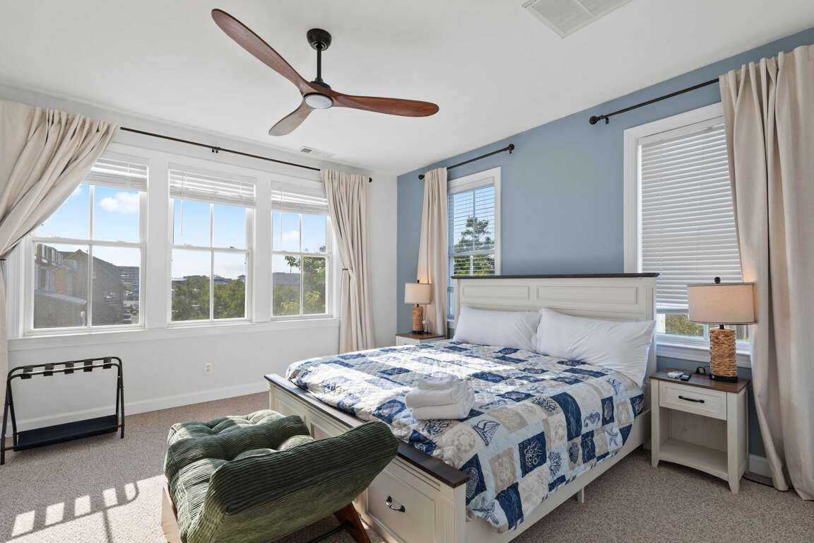 🛏 Primary Suite: King bed, walk-in closet, en-suite bath w/ soaking tub + walk-in shower