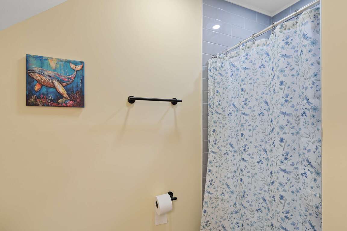 🛏 Bedroom 1: Queen bed, smart TV, nearby full bath