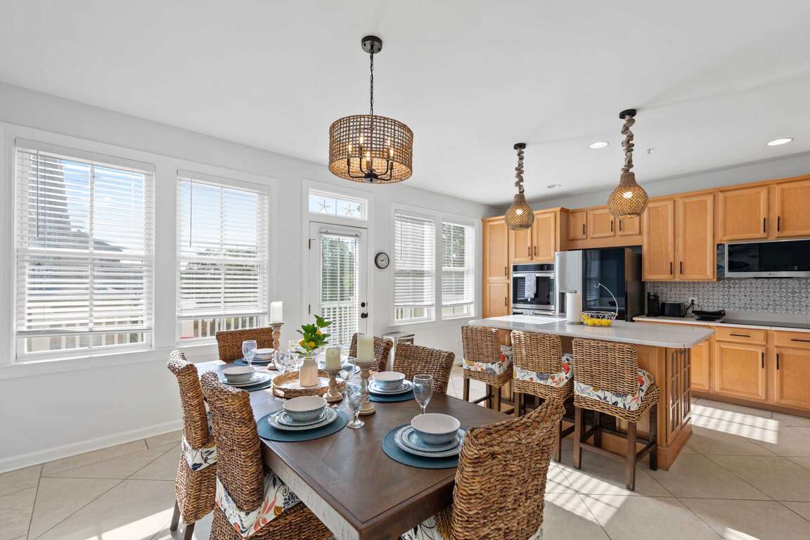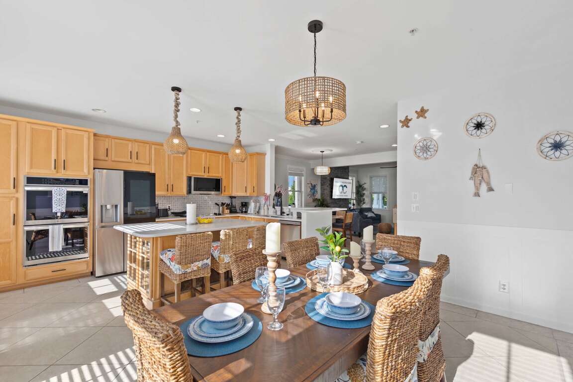✔ Dining table + breakfast area + island seating