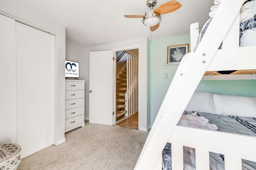 ✹ Bedroom 2 (Middle Level) — Twin-over-Full bunk with Twin trundle + TCL Roku Smart TV + private balcony
