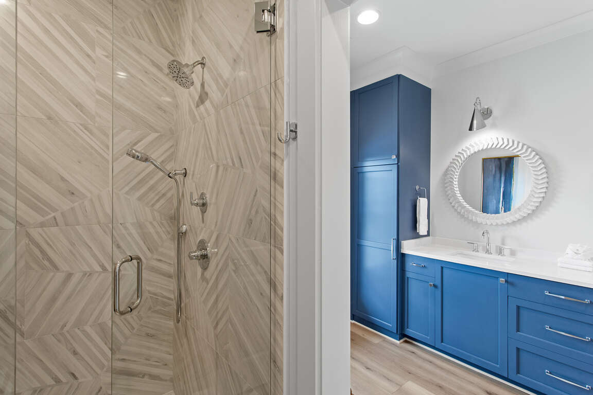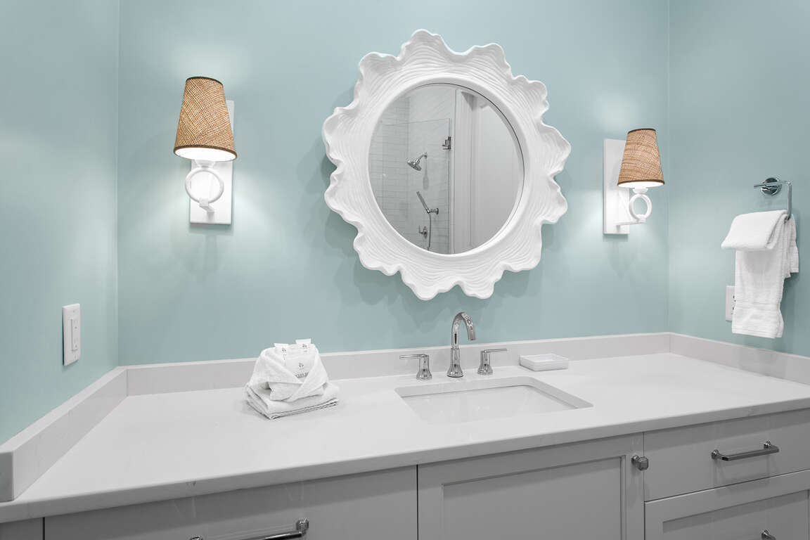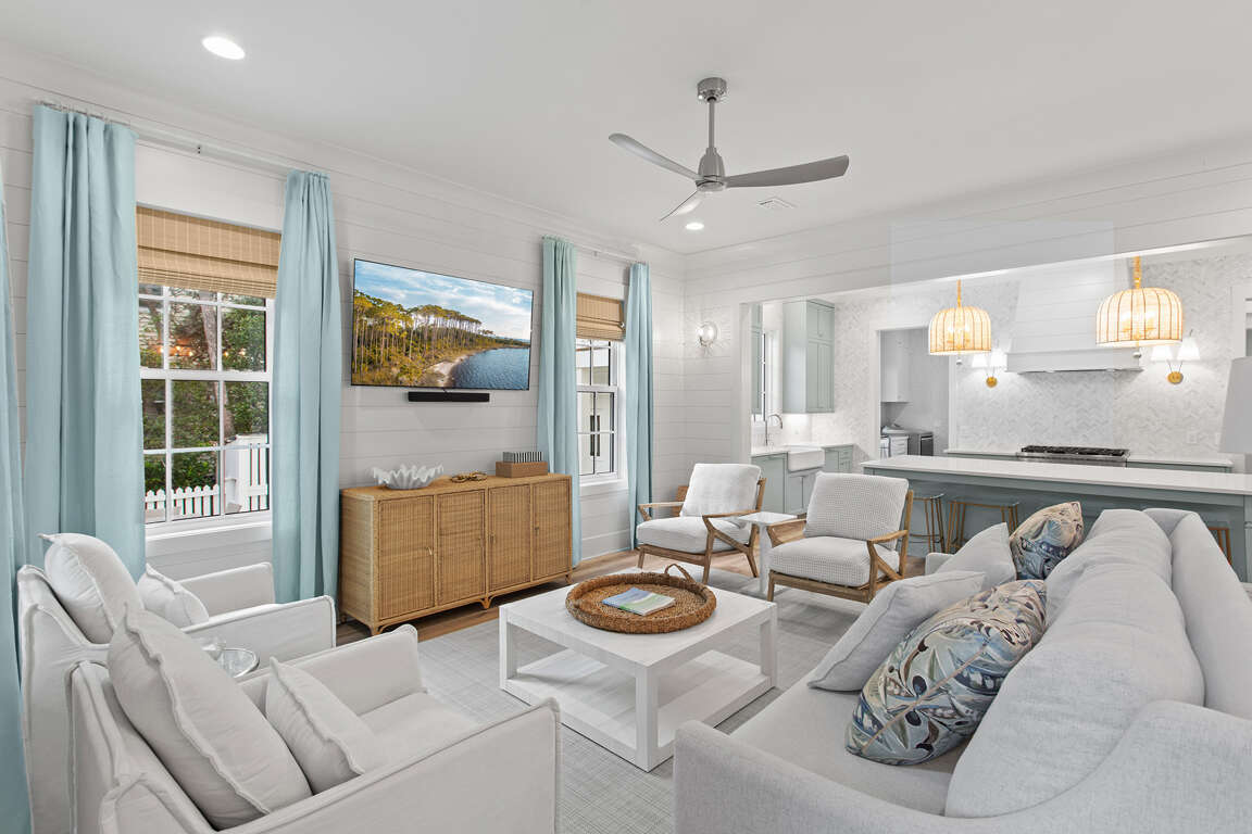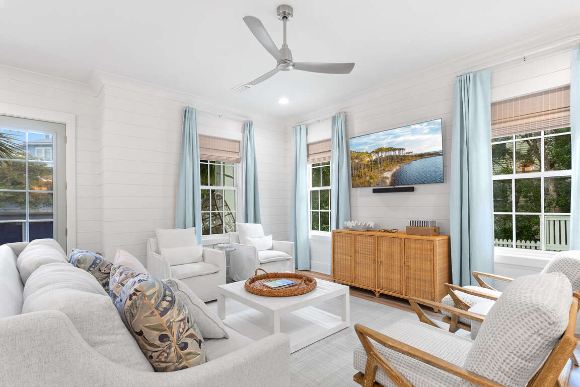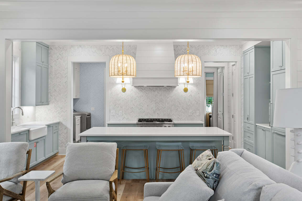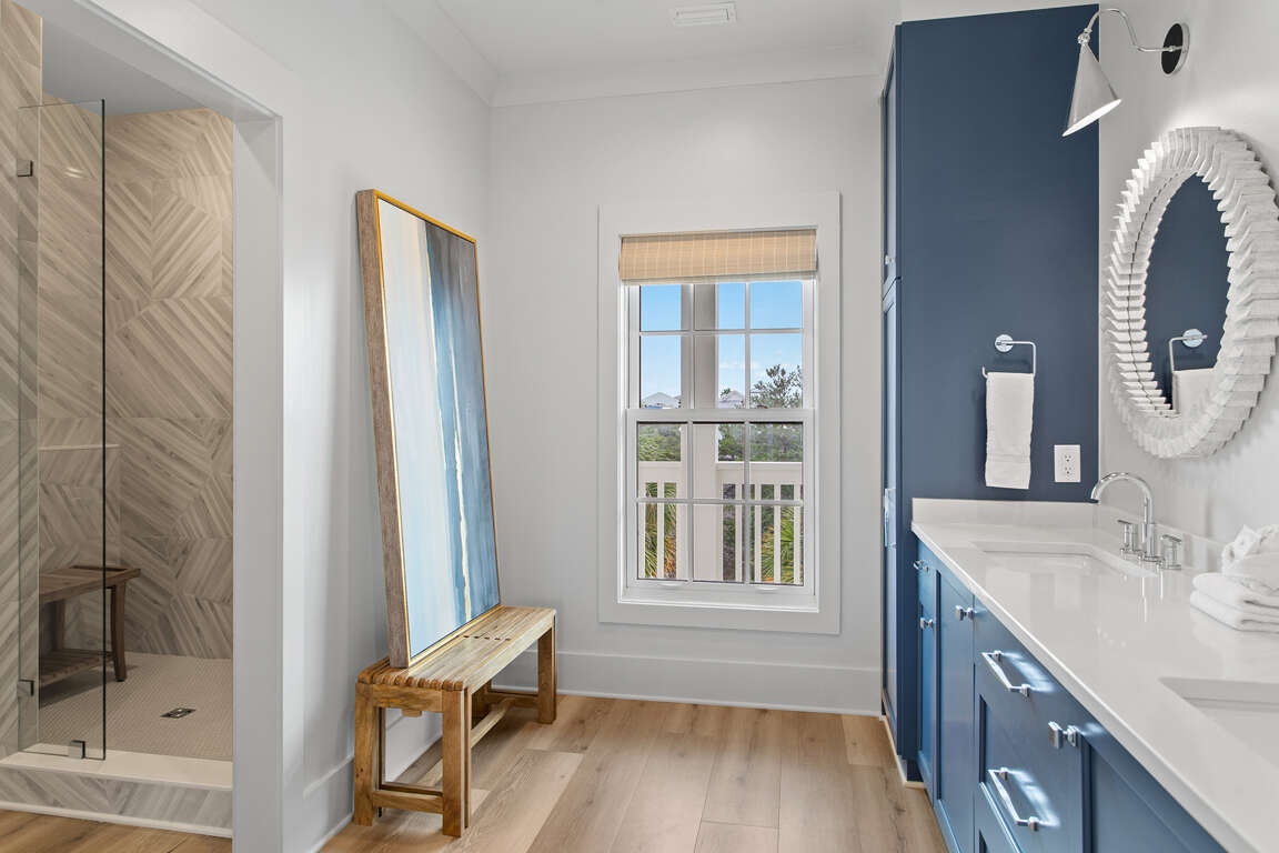 With a layout designed to accommodate up to 13 guests, the house and carriage house of this charming 6-bedroom vacation home in Old Florida Beach provide ample space and comfort for a luxurious stay. The interior design is a perfect blend of coastal charm and modern comfort, offering a large living room, a full kitchen, a dining room, and a half bathroom on the first level of the main house. The second level features a queen bedroom with a shared bathroom, a double twin bedroom, and two twin bunk rooms, each with its own private bathroom. The third level boasts a spacious king master bedroom with a large private bathroom. Additionally, the carriage house includes a queen bedroom, a twin bedroom, a living room, a full kitchen, and a shared hall bathroom. Moreover, the property features a private pool and balconies with views of the gulf, making it an ideal place to unwind after exploring the neighborhood attractions.