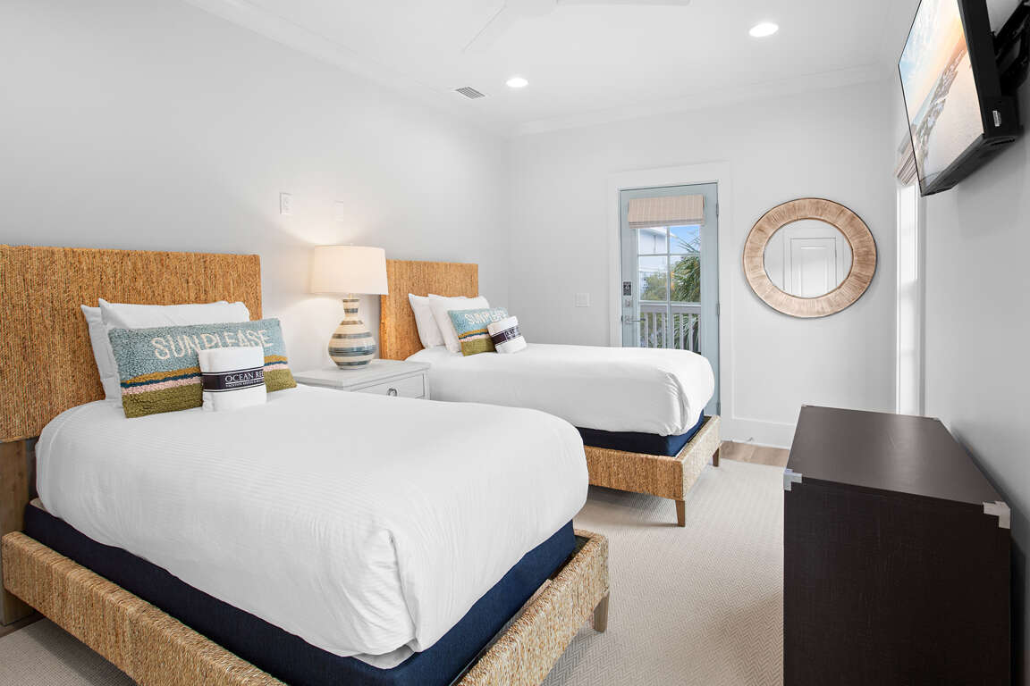 The property's highlights include a secluded third-floor balcony with an outdoor twin bed, a private pool that can be heated for an additional fee, and a charming carriage house with a full kitchen and living room. This spacious 6-bedroom house offers stunning beach views from its balconies and is nestled in the gated community of Old Florida Beach. With a maximum occupancy of 13 guests, this beautifully decorated house and carriage house provide ample space for a relaxing and enjoyable vacation. The private pool, which can be heated for an additional fee, adds to the allure of this property, offering a perfect spot to unwind and soak up the sun. Whether you're seeking a peaceful retreat or a fun-filled family getaway, this property promises the freedom to create unforgettable memories against a backdrop of breathtaking beach views.