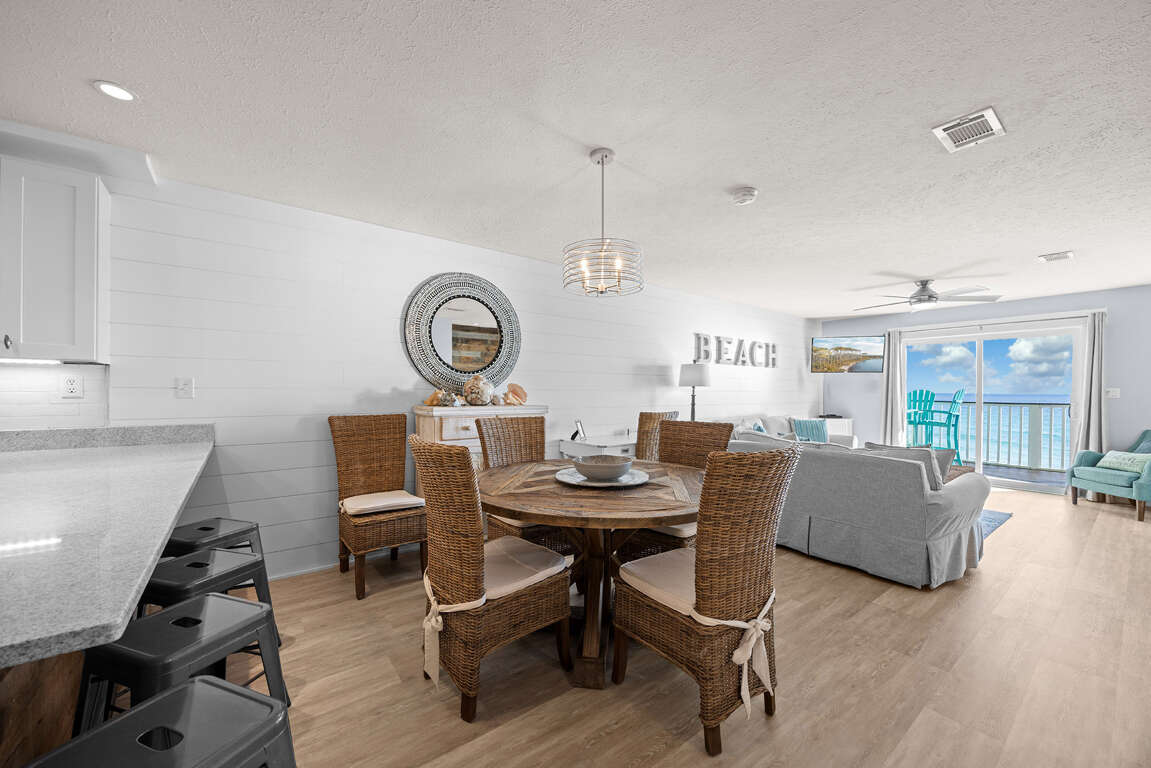 Sunseekers 4 - Enjoy the unbelievable views and gulf-front breeze in this coastal-style condo located in Blue Mountain Beach. Sunseekers 4 is a two bedroom, two bath that sleeps 6 with 1 king, 2 full beds, 1 full daybed, and a queen sleeper sofa. The Sunseekers complex is comprised of only ten units, with a unique family feel located on the most beautiful span of beach in the world.Sunseekers 4 is a 2nd level condo (no elevator) with beautiful gulf views and private, direct beach access. Recently renovated, the condo has a great beachy feel inside with a calming color palate and new, comfortable furniture as well. The living room has plenty of room for seating, a flat screen TV and doors that open to the balcony facing the gulf. The master bedroom faces the Gulf of Mexico so you can lie in bed and see and hear the water lapping on the shore. The second bedroom has an additional two full beds and another private bath. Crab along the beach at night, go for sunset strolls, rent a kayak from across the street and play with the dolphins, or simply lie on the sugary white sand beach and soak up the rays. Bike to Seaside or Grayton along the miles of bike trails or go to Grayton Beach State Park and hike the trails enjoying the wildlife and views.Second Floor Walk-Up:All One Level: Living Room with Full Daybed and Queen Sleeper Sofa + Balcony Access, Kitchen, Dining, King Bedroom with Walk-In Shower and Balcony Access, Bedroom with Two Full Beds and Tub/Shower Combo, Laundry.*This Condo only allows for 6 people to stay the night.*On-site parking restricted to one vehicle per property. Minimal overflow parking is available on a first come, first serve basis. Golf carts are not permitted.*Note This property may have date restrictions that apply. All reservations submitted online are a request until receiving an email confirmation from Ocean Reef Resorts. For more details, please review our Minimum Night Stay under Rental Policies. An e-signed rental agreement is required prior to arrival.