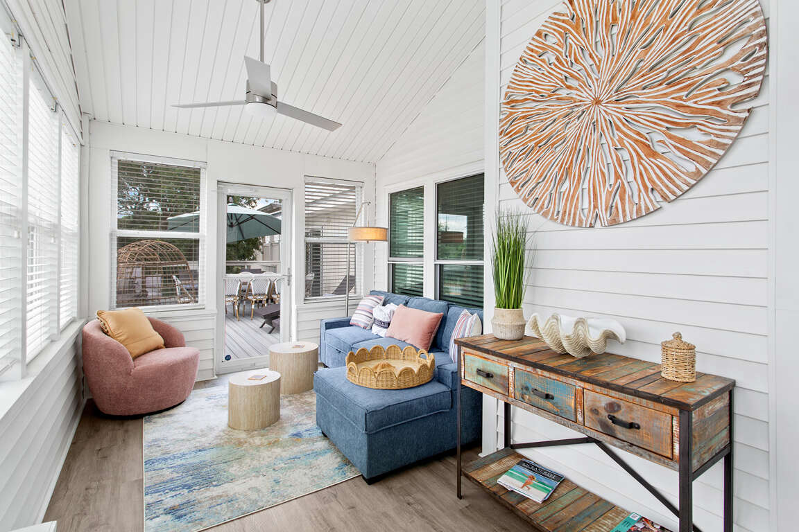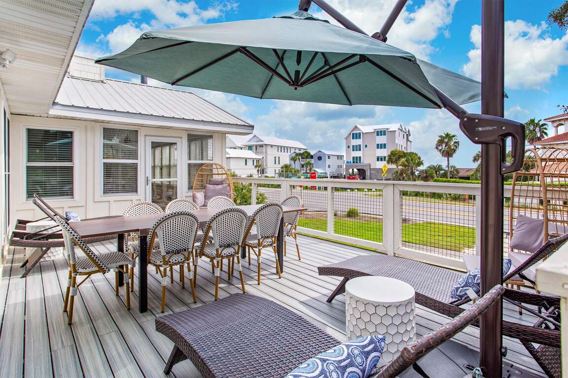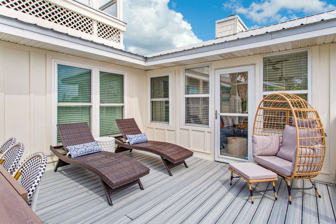 Perched atop the Black Jack Bungalow, the rooftop deck offers sweeping coastal views that captivate and inspire guests with its breathtaking panorama of the surrounding natural beauty. The perfect setting for outdoor entertainment, the deck provides an idyllic space for sunset cocktails, allowing guests to unwind and soak in the stunning vistas of the sun dipping below the horizon. With ample seating and a relaxed ambiance, it's an ideal spot for socializing or simply taking in the majestic coastal scenery. The rooftop deck enhances the experience of staying at Black Jack Bungalow, providing an enchanting setting for guests to enjoy the balmy sea breeze and savor the magic of the Gulf Coast's sunsets.