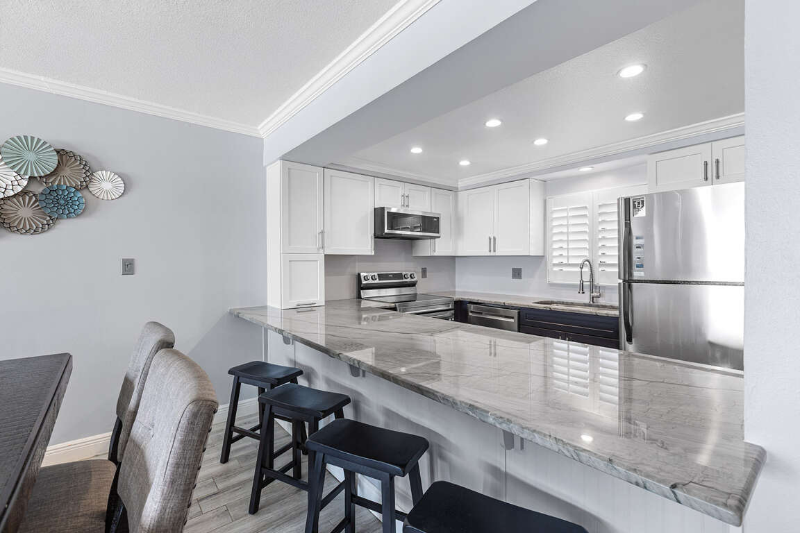 This coastal condo provides an ideal setting for a relaxing getaway, with convenient access to nearby dining establishments and breathtaking beach vistas.