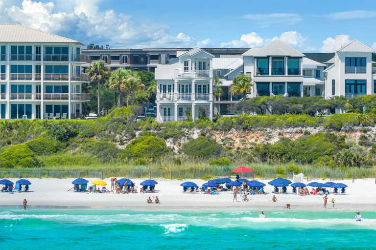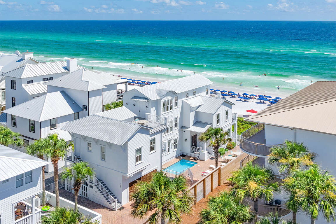 Seabourn Beach Retreat offers a lavish 6-bedroom getaway in Inlet Beach, FL. Bask in the sun by the private pool or enjoy the modern comforts of this luxurious abode.