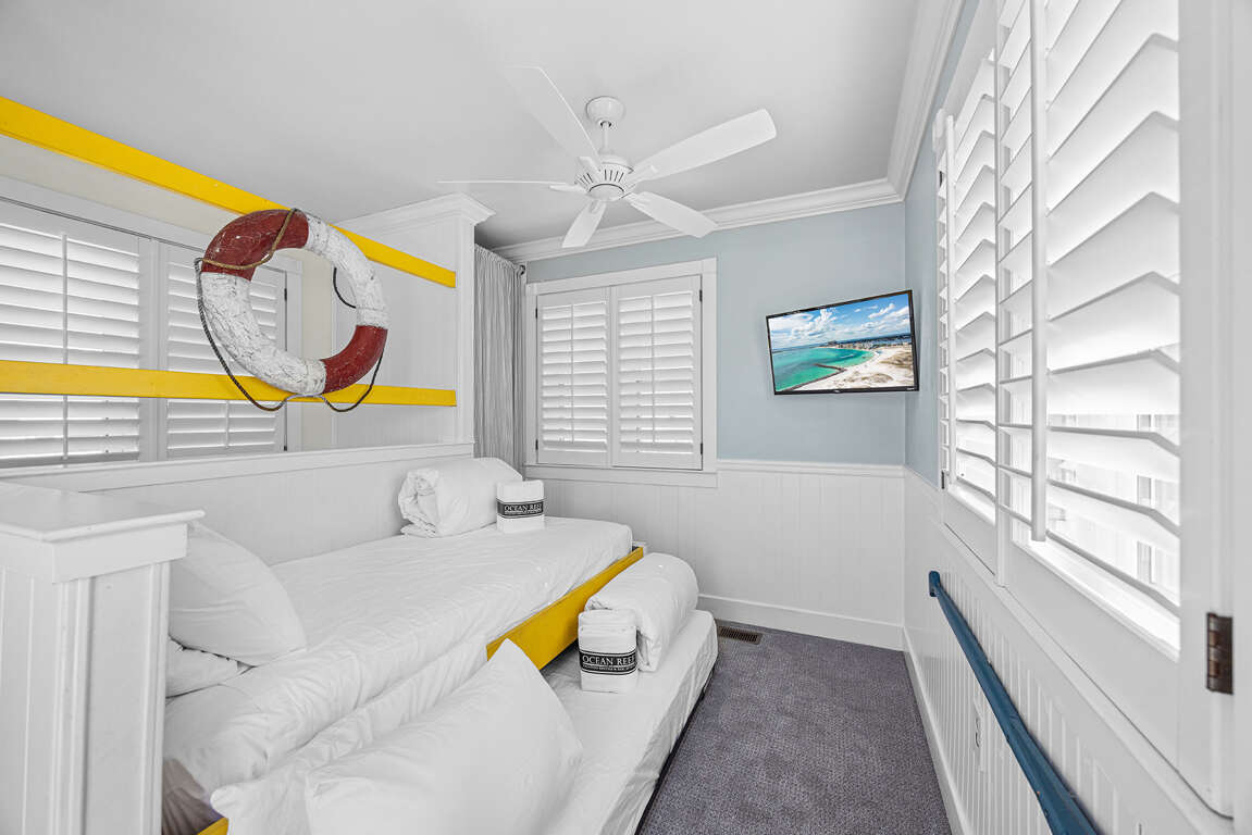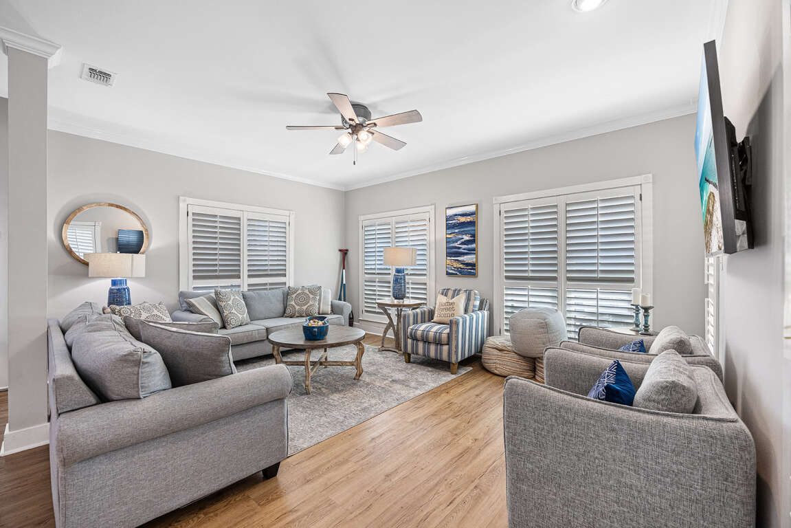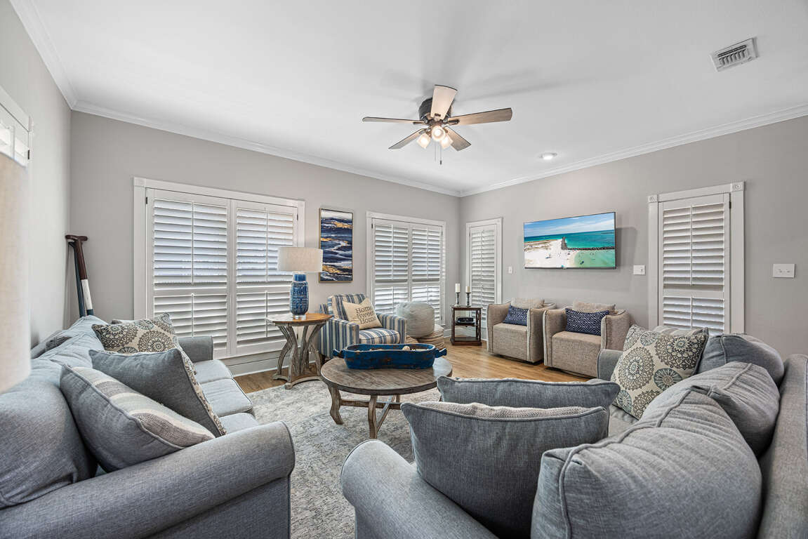 What You Will Love About Gulfside GetawayGulfside Getaway offers the perfect blend of space, comfort, and classic coastal charm, creating an inviting retreat just moments from the beach. With five bedrooms, four bathrooms, and accommodations for up to sixteen guestsincluding a private carriage housethis thoughtfully designed home spans three airy levels and provides over 2,400 square feet for everyone to relax and reconnect. From the welcoming front porch with its rocking chairs to the breezy balconies, every space invites you to slow down and enjoy the rhythm of the coast.Inside the main home, the first floor features a bright, open-concept living area filled with natural light and styled in soft beach tones. The spacious living room includes a queen sleeper sofa, Smart TV, and easy access to the patio, making it a comfortable gathering spot after a day on the sand. The adjacent dining area flows seamlessly into a well-equipped kitchen with white cabinetry, sleek countertops, a gas range, and convenient extras like a Keurigperfect for everything from quick breakfasts to family dinners. A king bedroom, full bath, and laundry room on this level add both comfort and convenience.Upstairs, the second-floor king suite offers a private balcony and a spa-inspired bathroom with a soaking tub and walk-in shower, creating a peaceful retreat. The bunk room is ideal for families or younger guests, featuring two twin-over-full bunks with trundles and its own full bath with a walk-in shower. The third-floor loft provides an additional flexible sleeping space with a twin bed and trundle, along with balcony access that adds to the homes relaxed, open feel.The separate carriage house enhances the experience with its own private king bedroom, Smart TV, and full ensuite bath with a walk-in shower, offering a quiet escape for guests seeking extra privacy. Outdoors, multiple spaces invite you to unwind, from dining on the back deck to rinsing off in the outdoor shower or enjoying the peaceful, palm-lined setting from the front porch.What You Will Love About Crystal ShoresCrystal Shores is a quiet, charming neighborhood that places you close to the best of Destin while maintaining a relaxed residential feel. Lined with palm trees and designed for easy coastal living, the community offers a peaceful setting that feels tucked away yet remains incredibly convenient.Guests of Gulfside Getaway enjoy access to the nearby community pool, located just a short two-minute walk from the home. The pool is typically heated around the Thanksgiving period based on seasonal conditions and HOA discretion, providing a refreshing spot to cool off or unwind after a day at the beach. The combination of proximity, comfort, and a welcoming neighborhood atmosphere makes Crystal Shores a wonderful home base for your stay.What You Will Love About Crystal BeachCrystal Beach is one of Destins most desirable areas, known for its laid-back charm, walkable streets, and beautiful stretches of sugar-white sand. From Gulfside Getaway, the beach is just a short four-minute stroll away, making it easy to start your day with sunrise views and end it with the sound of the waves.Nearby dining favorites include Camille's at Crystal Beach, Pompano Joe's, and The Crab Trap, each offering a relaxed coastal atmosphere and fresh seafood. For shopping, dining, and entertainment, Destin Commons is just minutes away, along with other popular attractions like the HarborWalk and local golf courses. With its ideal mix of convenience, charm, and coastal beauty, Crystal Beach provides the perfect setting for a memorable getaway.What You Will Love About Ocean Reef ResortsWhen you stay with Ocean Reef Resorts, youre supported by a trusted local company known for delivering exceptional service and a seamless vacation experience. With 24/7 guest support, every detail is handled with care so you can fully relax and enjoy your time at the beach.Guests also enjoy exclusive perks that enhance their stay, including discounts on golf, tennis, and area rentals. With professional management and a strong commitment to guest satisfaction, Ocean Reef Resorts ensures your time at Gulfside Getaway is comfortable, carefree, and filled with lasting memories.Main House:First Floor: Living Room with Queen Sleeper Sofa and Patio Access, Kitchen, Dining, King Bedroom, Full Bathroom, Laundry.Second Floor: King Bedroom with Balcony Access and Full Bath, Bunk Room with Two Twin over Full Bunks + Walk-In Shower. Third Floor: Loft with Twin Bed and Twin Trundle + Balcony Access.Guest House:First Floor: King Bedroom with Walk-In Shower.*Based on the daily temperature and at the HOA's discretion, the community pool is typically heated during the week of Thanksgiving.*Note This property may have date restrictions that apply. All reservations submitted online are a request until receiving an email confirmation from Ocean Reef Resorts. For more details, please review our Minimum Night Stay under Rental Policies. An e-signed rental agreement is required prior to arrival.