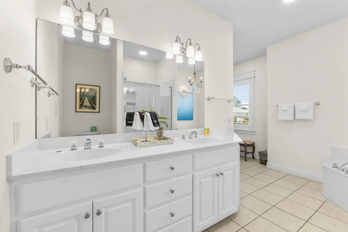 Sunny Seagrove- Sunny Seagrove is brand new to our vacation rental management program. Hurry and secure your reservation now or check back soon for additional images and details!First Floor: Living Room with Patio Access and Queen Sleeper Sofa, Kitchen, Dining, Guest Bedroom with Two Full Beds, Shared Bathroom with Shower/Tub Combo.Second Floor: King Primary Bedroom with Balcony Access and Private Bathroom with Walk-In-Shower + Soaking Tub, King Bedroom with Shower/Tub Combo.*Note This property may have date restrictions that apply. All reservations submitted online are a request until receiving an email confirmation from Ocean Reef Resorts. For more details, please review our Minimum Night Stay under Rental Policies. An e-signed rental agreement is required prior to arrival.