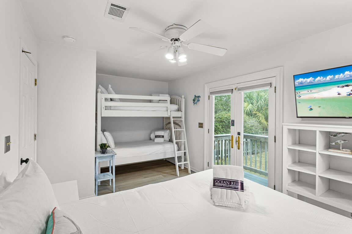 What You Will Love About Turquoise Turtle CottageTurquoise Turtle Cottage welcomes you with relaxed coastal style, spacious comfort, and the luxury of your own private pool. With four bedrooms and three full baths accommodating up to 12 guests, there is room for everyone to gather while still enjoying private retreats. The first-floor living area is bright and open, flowing seamlessly to the patio and pool so indoor and outdoor living feel effortlessly connected. From slow mornings with coffee in the sunshine to relaxed evenings after the beach, the inviting layout keeps everyone comfortably together.The kitchen blends style and function with granite countertops, stainless steel appliances, and bar seating that makes meal prep a shared experience. The adjacent dining area is perfect for everything from casual breakfasts to fresh Gulf seafood dinners. A first-floor guest bedroom with a queen bed and twin-over-twin bunks offers flexible sleeping arrangements and direct patio access. A hall bath with a walk-in shower and a convenient laundry room complete this level.Upstairs, the King Primary suite provides a peaceful escape with private balcony access and an en suite bath featuring a tub/shower combination. Down the hall, the bunk room includes full-over-full bunks and its own tub/shower combo bath, creating a comfortable haven for kids or teens. Soft coastal tones and natural light enhance the welcoming atmosphere throughout. Generous front and back yards framed by palms and native greenery offer additional space to relax, and small dogs are welcome so the whole family can enjoy the getaway.What You Will Love About Blue Mountain BeachBlue Mountain Beach is one of the most beloved communities along Scenic 30A, known for its laid-back charm and beautiful, uncrowded shoreline. The sugar-white sand and emerald waters are just a short 34 minute walk away with no major roads to cross, making beach days easy and spontaneous.You are also perfectly positioned to enjoy some of the areas favorite local spots. Enjoy coastal comfort food at Cowgirl Kitchen or grab fresh juices, organic bites, and specialty groceries at For the Health of It, both conveniently located right here in Blue Mountain Beach. Treat yourself to a sweet scoop at Blue Mountain Beach Creamery or enjoy live music and vibrant flavors at Red Fish Taco, all just minutes away. The peaceful neighborhood setting, surrounded by native greenery and gentle sea breezes, gives you that tucked-away feel while keeping everything within easy reach.What You Will Love About 30AScenic 30A is a collection of charming coastal communities connected by bike paths, rare coastal dune lakes, and stunning Gulf views. Exploring is part of the experience, whether you are cruising along the paved trail, discovering boutique shops, or sampling fresh Gulf seafood at a new favorite spot.Head east to experience the colorful cottages and lively town centers of Grayton Beach and Seaside, or venture west toward the quieter stretches of Dune Allen and the upscale shopping and dining of Miramar Beach. Each community offers its own unique personality, yet all share the relaxed, coastal elegance that makes 30A such a sought-after destination.What You Will Love About Ocean ReefYour stay at Turquoise Turtle Cottage is elevated by the trusted care of Ocean Reef Resorts. With over 40 years of experience along the Emerald Coast, Ocean Reef provides 24/7 guest support to ensure your vacation is seamless from arrival to departure. You will also enjoy exclusive perks, including discounts on golf, tennis, and area rentals, adding even more value to your time along 30A. With attentive service and local expertise, Ocean Reef makes your coastal escape effortless and unforgettable.First Floor: Living Room with Patio Access, Queen Sleeper Sofa, Kitchen, Dining, Guest Bedroom with Twin Bunk and Queen Bed + Patio Access, Hall Bath with Walk-In Shower, Laundry.Second Floor: King Primary Bedroom with Tub/Shower Combo and Balcony Access, Bunk Room with Full Bunks and Tub/Shower Combo.*Note This property may have date restrictions that apply. All reservations submitted online are a request until receiving an email confirmation from Ocean Reef Resorts. For more details, please review our Minimum Night Stay under Rental Policies. An e-signed rental agreement is required prior to arrival.