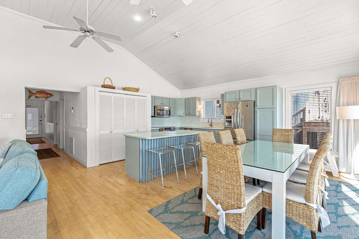 What amenities and features does Snowdrift, the 3-bedroom house in Miramar Beach, FL, offer for a comfortable and enjoyable vacation experience? Snowdrift provides an array of property amenities to ensure a relaxing and convenient stay. Guests can enjoy access to a fully equipped kitchen with stainless steel appliances, an eat-in bar, and a spacious living room with cathedral ceilings and stunning views from the wrap-around deck. The property also includes a master suite with a comfortable king-size bed and a private bathroom. Additionally, guests have access to a parking area on the first floor and a laundry room on the second floor. Rental rates for Snowdrift vary based on the season and availability, offering flexibility for guests seeking a memorable vacation experience in Miramar Beach, FL.