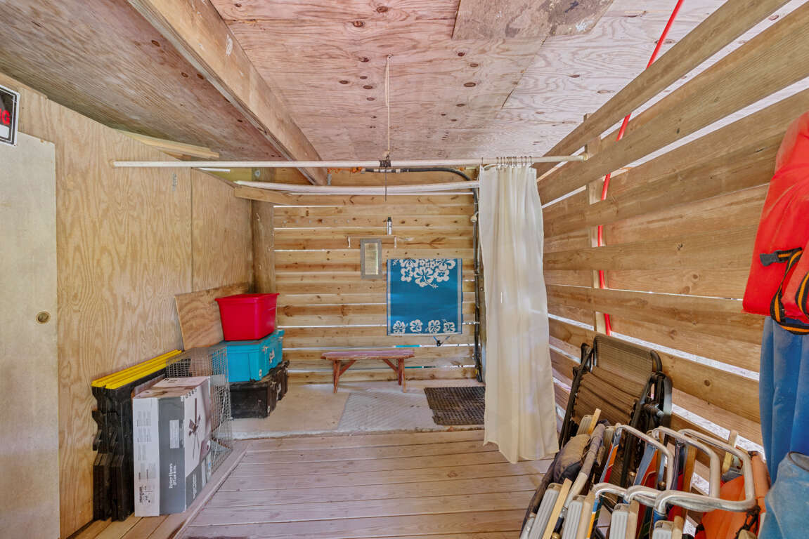 Ascend the deck stairs to discover three spacious bedrooms, a full bathroom, a cozy living area, a den, a delightful kitchen, and a laundry room. The ground level also offers an enclosed sunroom/deck. Relax on the deck while watching turtles in the water and soaking up some Vitamin D.
