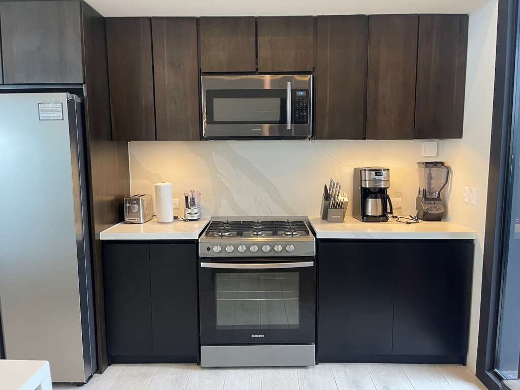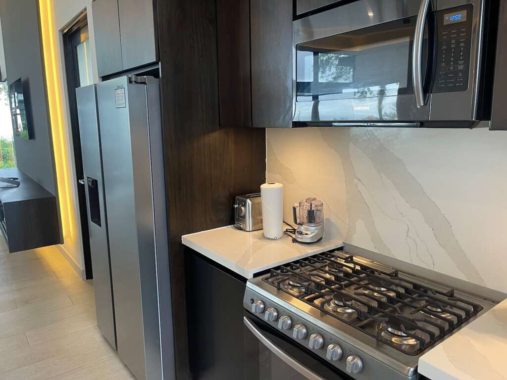 Enjoy the large swimming pool with waterfall, large and open concept kitchen-living room-dining area. Well equipped kitchen.