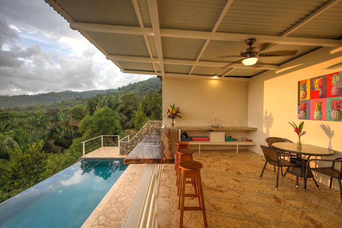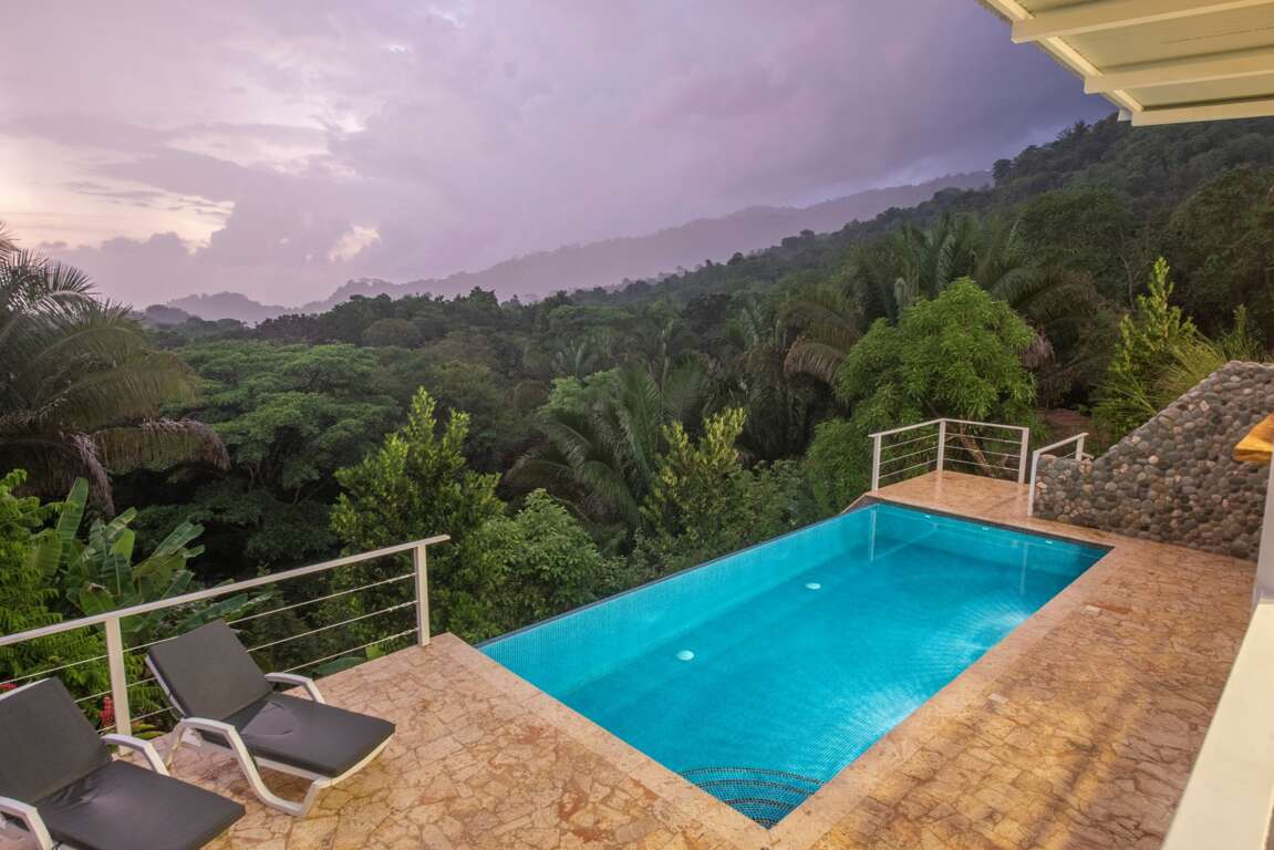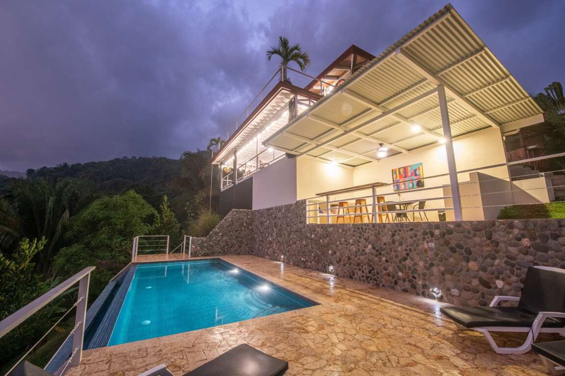 This private villa and casita with stunning jungle/ocean views has a private infinity pool of 8x4 meters, floating above the jungle. The villa is located about 600 meters to Playa Hermosa and 5km north from Uvita