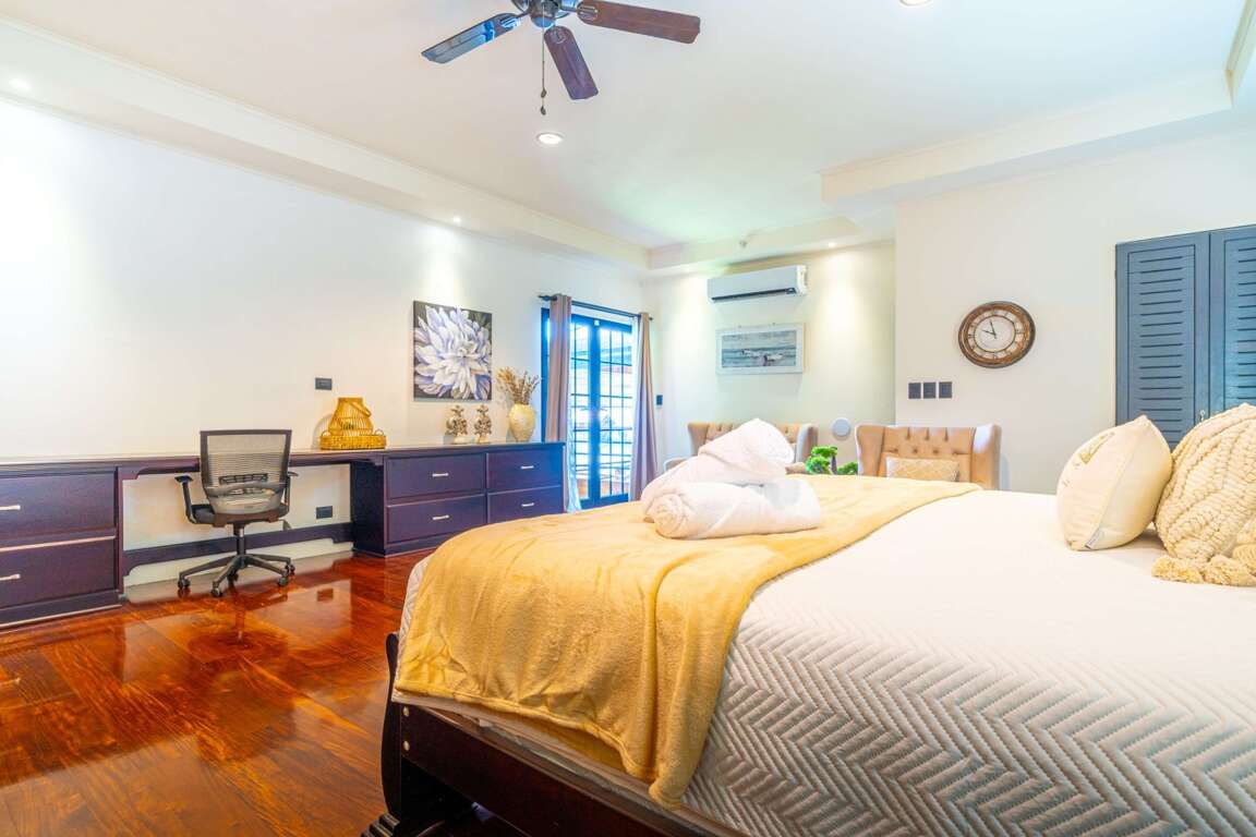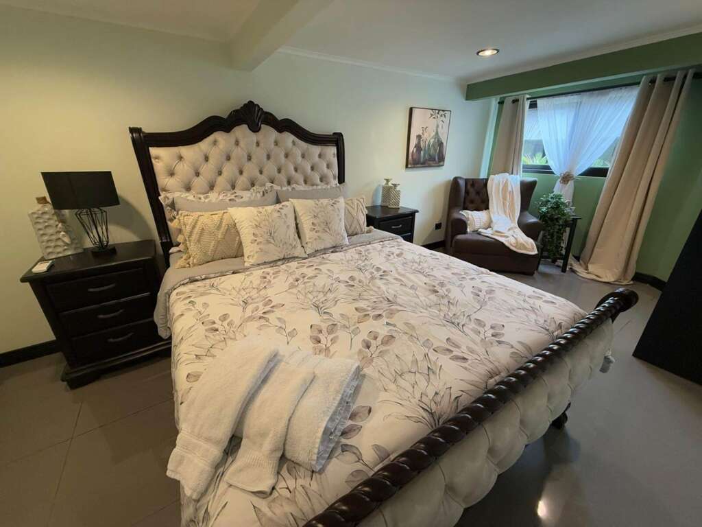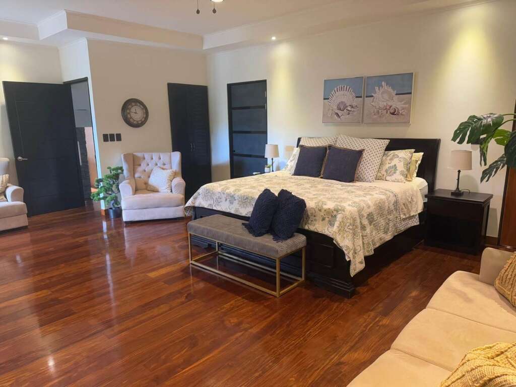 The Golfito Oasis Estate (Master) is a fantastic rental house, boasting 6 bedrooms and top-notch amenities like a pool, air conditioning, and internet access. Grill for BBQ available for fun evenings and a washer/dryer for absolute convenience.