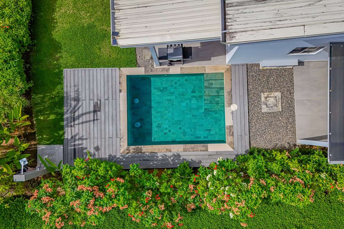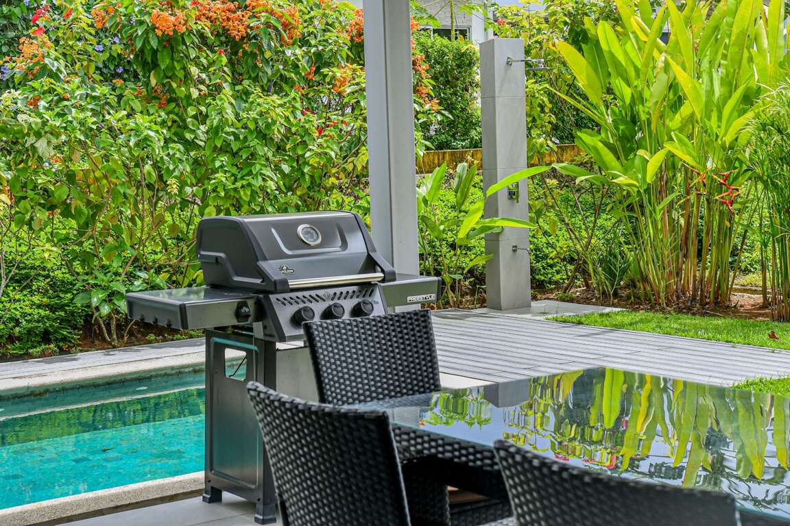 Private pool with outdoor seating.