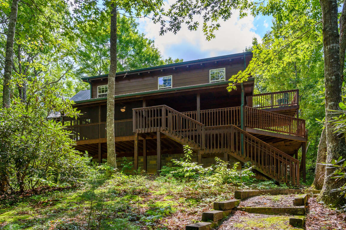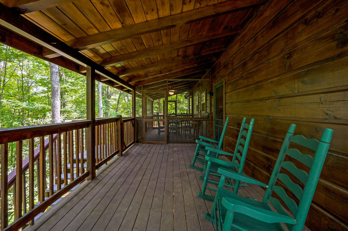 Multiple covered and screened decks are surrounded by wooded Smoky Mountain scenery. Enjoy morning coffee in the trees, unwind in the screened hot tub, or relax after a day of hiking or sightseeing.