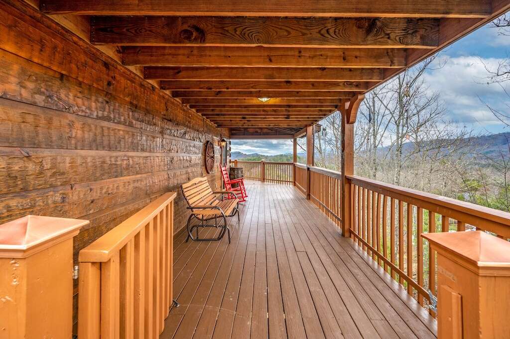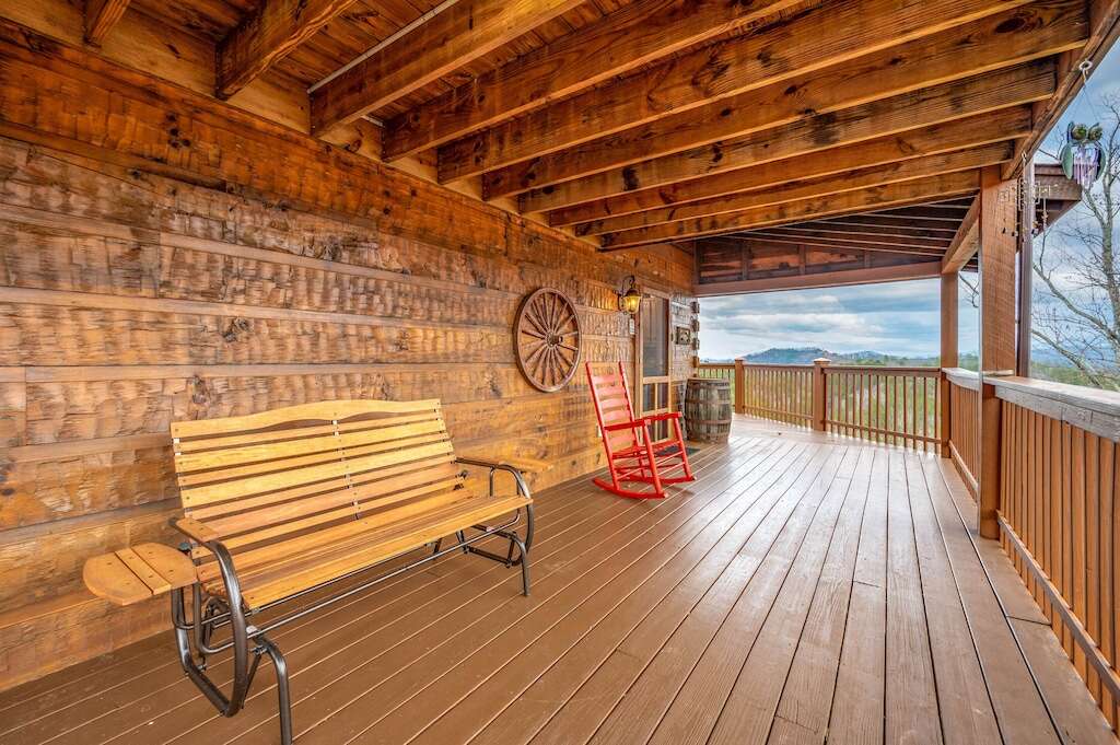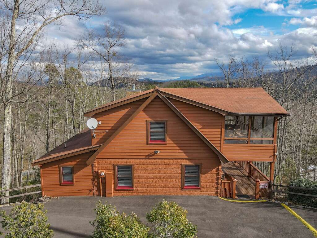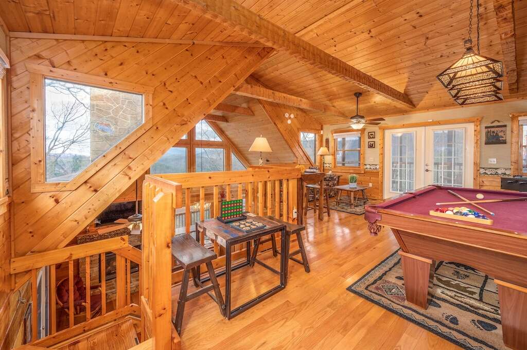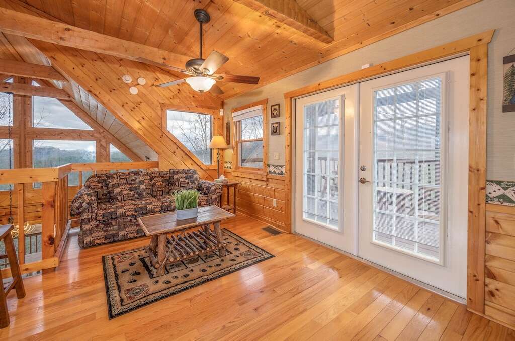 This stunning two-bedroom cabin in Pigeon Forge, TN is located Over the Mountain and offers a breathtaking view, modern amenities and perfect location for a memorable vacation.