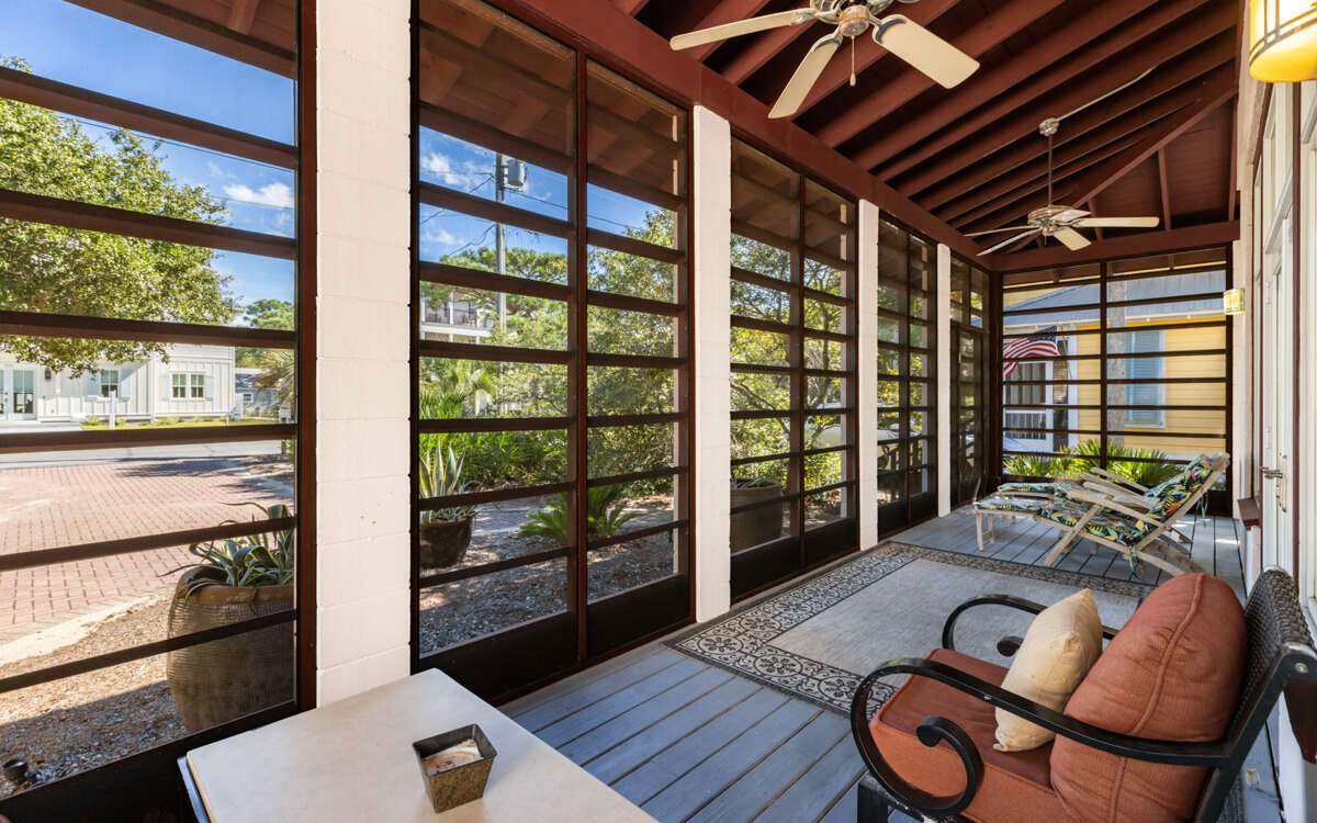 Boasting a serene Japanese-inspired design, the vacation home located at 249 San Juan Avenue in Seagrove Beach, Florida offers a tranquil retreat with two bedrooms, two full bathrooms, and a private pool for a peaceful getaway. The property provides an ideal setting for poolside relaxation, where guests can unwind in a peaceful environment surrounded by the beauty of nature. The tranquil screened-in porch overlooks a pool oasis, creating a perfect spot for morning coffee or evening cocktails. With open living space and kitchen seating for four, this home caters to those seeking a calming escape. The two bedrooms, each equipped with TVs and private bathrooms, ensure comfort and privacy during your stay.