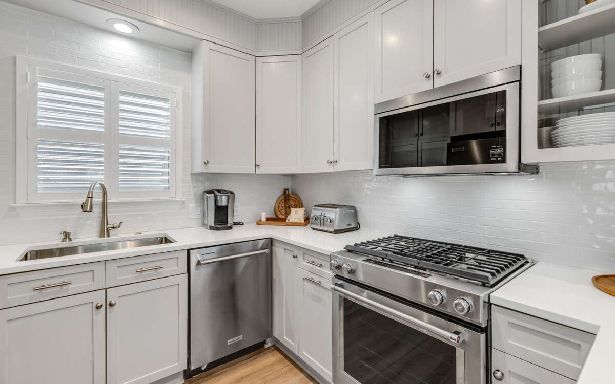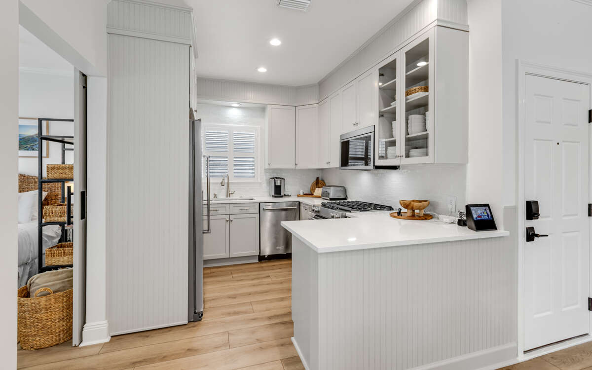 This bright and comfortable beach cottage offers a delightful mix of outdoor fun and indoor coziness. The open living and dining space is warm and inviting, while the fully equipped kitchen includes everything you need to cook your favorite meals, with plenty of seating for dining together, inside and out back.