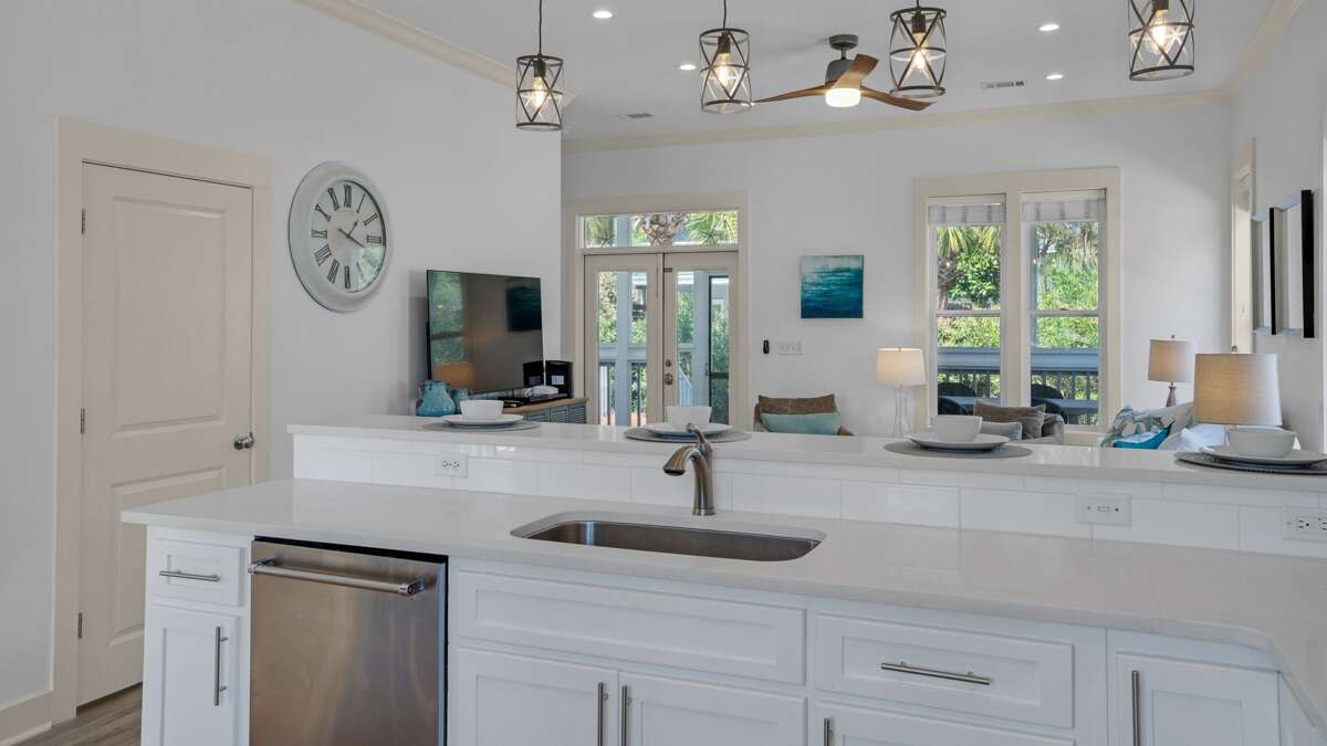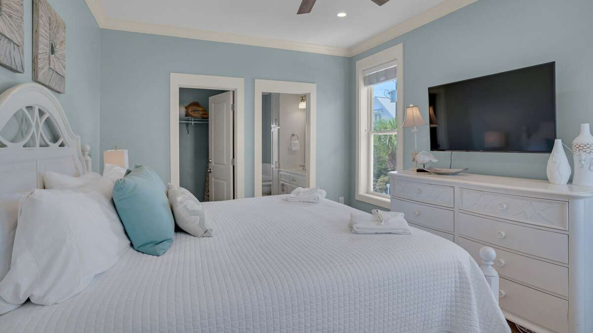 A Villa La La by Oversee 30A | 2025 Diamond Winner-Best Rental Mgmt.With a sparkling private pool and breathtaking Gulf views, A Villa La La is a bright, beautifully updated coastal retreat perfectly positioned in desirable Seagrove Beachjust a short stroll from the sand and surf. Seagrove Beach 0.2 mile 3-minute walk to deeded beach access Gulf views from upper decks Private pool (can be heated) 5 bedrooms, 4.5 baths Explore 30As Timpoochee Trail Outdoor BBQ grill Walk to great restaurants & cafs Boutiques and local shopping nearbyBright, airy, and designed for relaxation, A Villa La La blends timeless coastal charm with modern comfort. Whether youre sipping morning coffee on the deck overlooking the Gulf, lounging poolside in the Florida sunshine, or gathering for dinner with family and friends, this home sets the stage for unforgettable 30A memories.Inside, the open-concept main level welcomes you with natural light and calming coastal hues. The gourmet kitchen features stainless-steel appliances, ample counter space with seating for 5, and an adjoining dining area that seats 8. Step through the French doors to the screened-in patio and enjoy al fresco dining amid the ocean breeze. Five beautifully appointed bedrooms comfortably accommodate up to 12 guests, offering space and privacy for large or multiple families.Outside, the private fenced backyard offers a sparkling heated pool, comfortable loungers, and a gas grill for afternoon cookouts. Its the perfect spot to unwind after a day at the beach.In the heart of Seagrove Beach, youre just minutes from coffee shops, casual dining, and the white-sand shores of 30A. Hop on a bike and explore nearby Seaside, Grayton Beach, Alys Beach, and Rosemary Beachall just a short ride away.The deeded beach access for Summers Edge is a 0.2-mile, 3-minute walk from the home. To get there, turn left onto Eastern Lake Road, then turn right onto S Ryan. The beach access pergola is located down S Ryan to the left of the community pool. Take the path down from the pergola to the "T" intersection, where you will see the beach access sign leading to the boardwalk, which takes you directly down to the sand.Embrace the laid-back 30A lifestyle at A Villa La La, where luxury, location, and leisure come together in perfect harmony.Overview:-0.2 mile 3-minute walk to deeded beach access-5 bedrooms, 4.5 baths- 3,020 sq ft-Private pool (can be heated seasonally for an additional fee)-Outdoor BBQ grill-Wi-Fi included-Parking available on site-Screened patio and fenced backyard-Gulf views from upper decksOvernight:1st Floor-Bedroom 1: King bed with TV and private bathroom-Half Bath2nd Floor-Bedroom 2: King bed with TV and private bathroom with jacuzzi tub-Bedroom 3: Twin-over-twin bunks with twin trundle and TV-Bedroom 4: Twin-over-twin bunks with twin trundle and TV (shared bathroom with Bedroom 3)3rd Floor-Bedroom 5: King bed with TV, private bathroom, and private balcony with Gulf viewsCheck-in is 4:00 PM CST. Check-out is 10:00 AM CST.