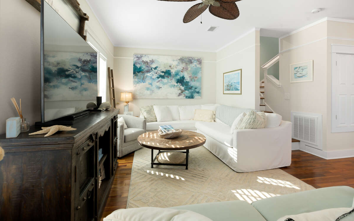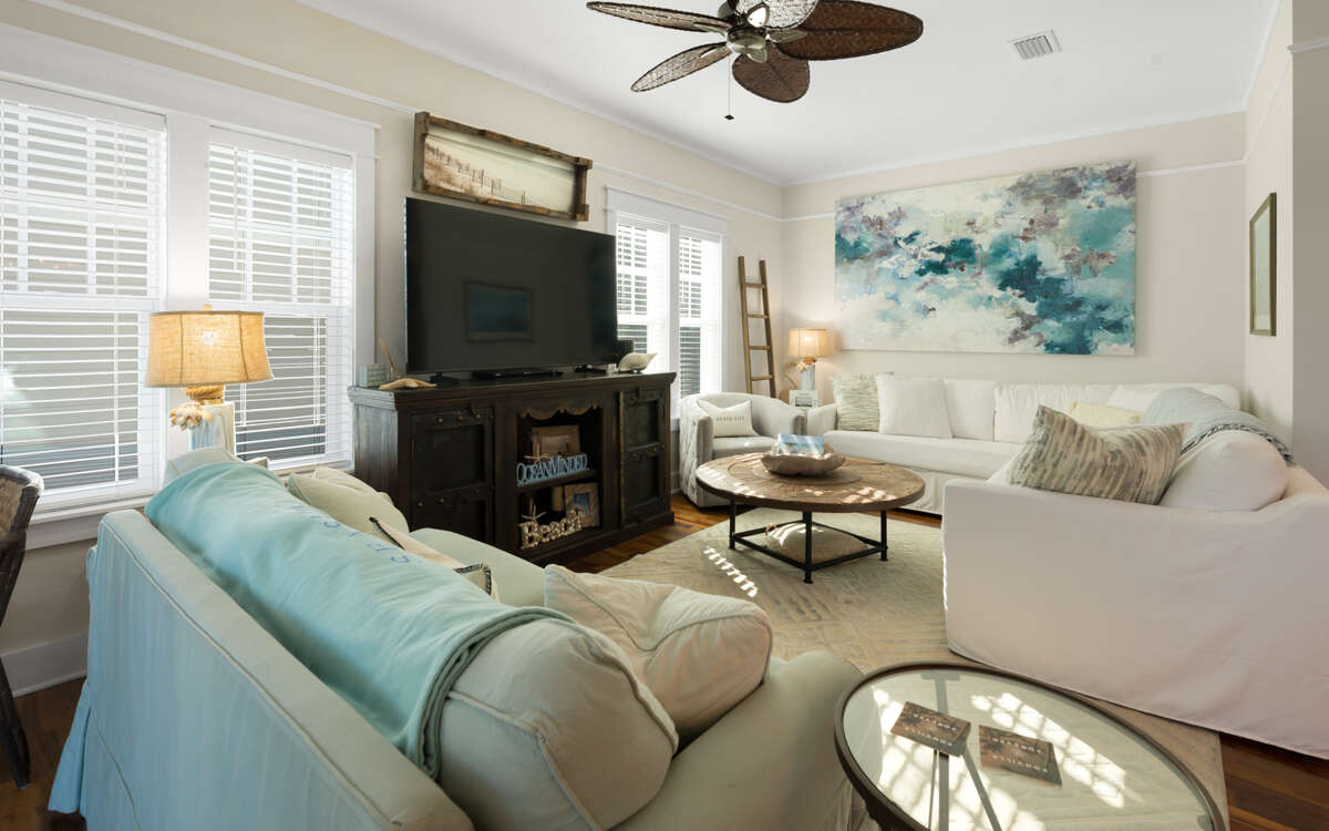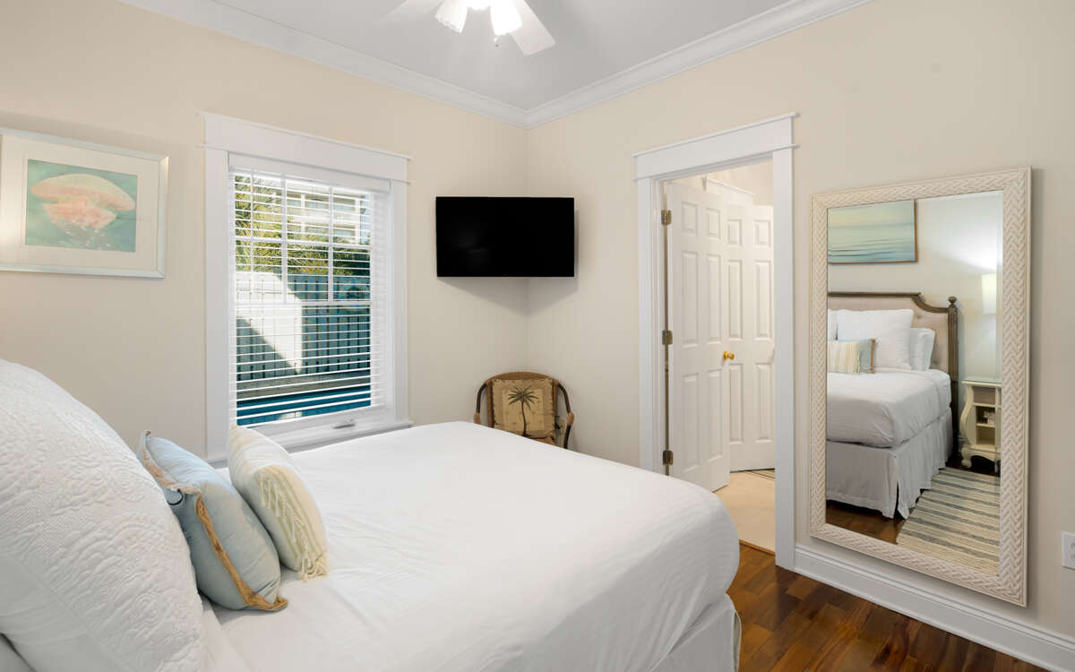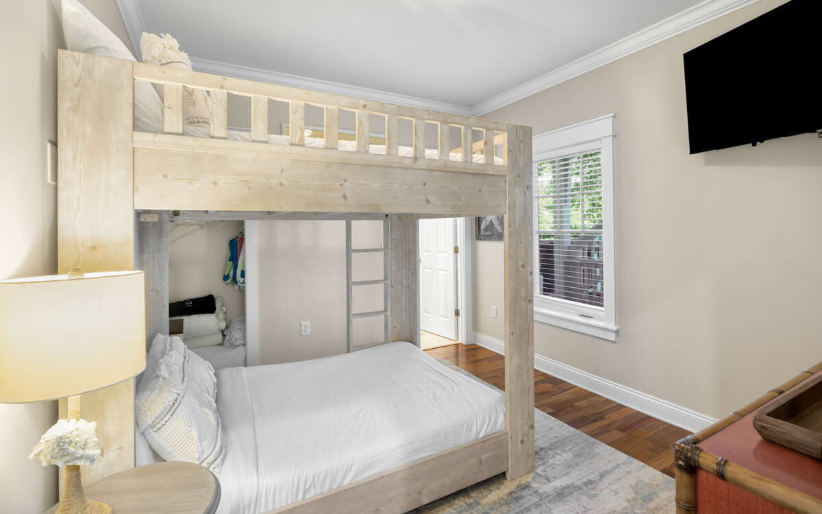 Bluesunshine by Oversee 30A | 2025 Diamond Winner - Best Rental Mgmt.Say hello to Bluesunshine, a happy little slice of Seagrove just a few sandy steps from the beach and moments from Eastern Lake. Everything feels easier here. Stretch out by the private pool(!), wander to the porches for Gulf views, and let the week unfold. Complimentary beach chairs and umbrella? Whoa! From March 1 through October 31, weve got you covered (with shade).Highlights: Gated Seashore Village, in Seagrove Just steps to private beach access! Private pool! Complimentary (seasonal) beach chairs and umbrella! 4 bikes! Explore Seaside, WaterColor, Alys, and Rosemary Beach. Walk to 5-star restaurants, boutiques, Eastern Lake, Deer Lake State Park Three porches! Charcoal grill 5 Bedrooms, 3.5 Bathrooms Primary bedroom with private balcony on third floor 2 parking spaces with carportYour private pool waits out back, perfect for cannonballs, quiet floats, or pretending youre in a travel commercial. Four bikes are ready too. Ride to Seaside for breakfast, to Alys Beach for pics that make your friends jealous, or to Rosemary Beach for, well, anything delicious.Inside, five bedrooms and three-and-a-half baths keep everyone comfy. The second-floor living space opens onto a balcony with two bed swings, which have been known to steal entire afternoons. Exterior stairs lead straight to the pool deck for quick dips or snack refills.The third-floor primary suite gets its own balcony, the kind of hideaway that pairs well with coffee, sunsets, or escaping group decisions about dinner.And because Bluesunshine sits on Seashore Circle, a quiet, one-way street, kids can roam a bit and grownups can relax a lot.Add in two covered parking spaces, a charcoal grill, and walkability to 5-star restaurants and boutiques, and your vacation basically plans itself.As always, the Oversee 30A team is nearby, making sure everything feels just right. Need anything? Were here every day, plus a 24/7 line for the unexpected. Now go enjoy that pool.Overview:-Gated Seashore Village, in Seagrove-2,415 sq ft-Private beach access- Complimentary beach chairs and an umbrella (March 1st - October 31st)-Private pool-4 complimentary bikes-Quick walk to restaurants and bike paths-Wi-Fi-Charcoal grill-Private off-street gated parking for 2 (carport) Overnight:FIRST FLOORGuest Room: Queen bed, shared full hall bathBunk Room: Full-over-full bunks, shared full hall bathGuest Room: Queen bed, connected full hall bathSECOND FLOORBunk Room: Twin bunks, shared half hallway bathTHIRD FLOORPrimary Bedroom: King bed, private bath, balcony Check-in is 4:00 PM CST. Check-out is 10:00 AM CST