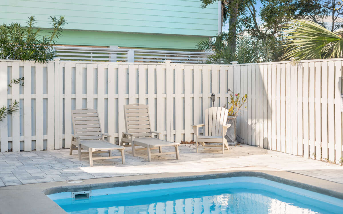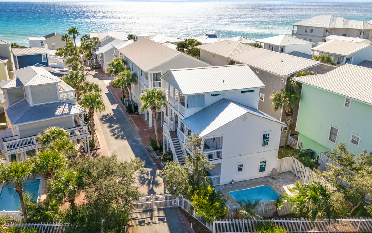 Bluesunshine by Oversee 30A | 2025 Diamond Winner - Best Rental Mgmt.Highlights: Gated Seashore Village, in Seagrove Just steps to private beach access! Private pool! Complimentary (seasonal) beach chairs and umbrella! 4 bikes! Explore Seaside, WaterColor, Alys, and Rosemary Beach. Walk to 5-star restaurants, boutiques, Eastern Lake, Deer Lake State Park Three porches! Charcoal grill 5 Bedrooms, 3.5 Bathrooms Primary bedroom with private balcony on third floor 2 parking spaces with carportSay hello to Bluesunshine, a happy little slice of Seagrove just a few sandy steps from the beach and moments from Eastern Lake. Everything feels easier here. Stretch out by the private pool(!), wander to the porches for Gulf views, and let the week unfold. Complimentary beach chairs and umbrella? Whoa! From March 1 through October 31, weve got you covered (with shade).Your private pool waits out back, perfect for cannonballs, quiet floats, or pretending youre in a travel commercial. Four bikes are ready too. Ride to Seaside for breakfast, to Alys Beach for pics that make your friends jealous, or to Rosemary Beach for, well, anything delicious.Inside, five bedrooms and three-and-a-half baths keep everyone comfy. The second-floor living space opens onto a balcony with two bed swings, which have been known to steal entire afternoons. Exterior stairs lead straight to the pool deck for quick dips or snack refills.The third-floor primary suite gets its own balcony, the kind of hideaway that pairs well with coffee, sunsets, or escaping group decisions about dinner.And because Bluesunshine sits on Seashore Circle, a quiet, one-way street, kids can roam a bit and grownups can relax a lot.Add in two covered parking spaces, a charcoal grill, and walkability to 5-star restaurants and boutiques, and your vacation basically plans itself.As always, the Oversee 30A team is nearby, making sure everything feels just right. Need anything? Were here every day, plus a 24/7 line for the unexpected. Now go enjoy that pool.Overview:-Gated Seashore Village, in Seagrove-2,415 sq ft-Private beach access- Complimentary beach chairs and an umbrella (March 1st - October 31st)-Private pool-4 complimentary bikes-Quick walk to restaurants and bike paths-Wi-Fi-Charcoal grill-Private off-street gated parking for 2 (carport) Overnight:FIRST FLOORGuest Room: Queen bed, shared full hall bathBunk Room: Full-over-full bunks, shared full hall bathGuest Room: Queen bed, connected full hall bathSECOND FLOORBunk Room: Twin bunks, shared half hallway bathTHIRD FLOORPrimary Bedroom: King bed, private bath, balcony Check-in is 4:00 PM CST. Check-out is 10:00 AM CST